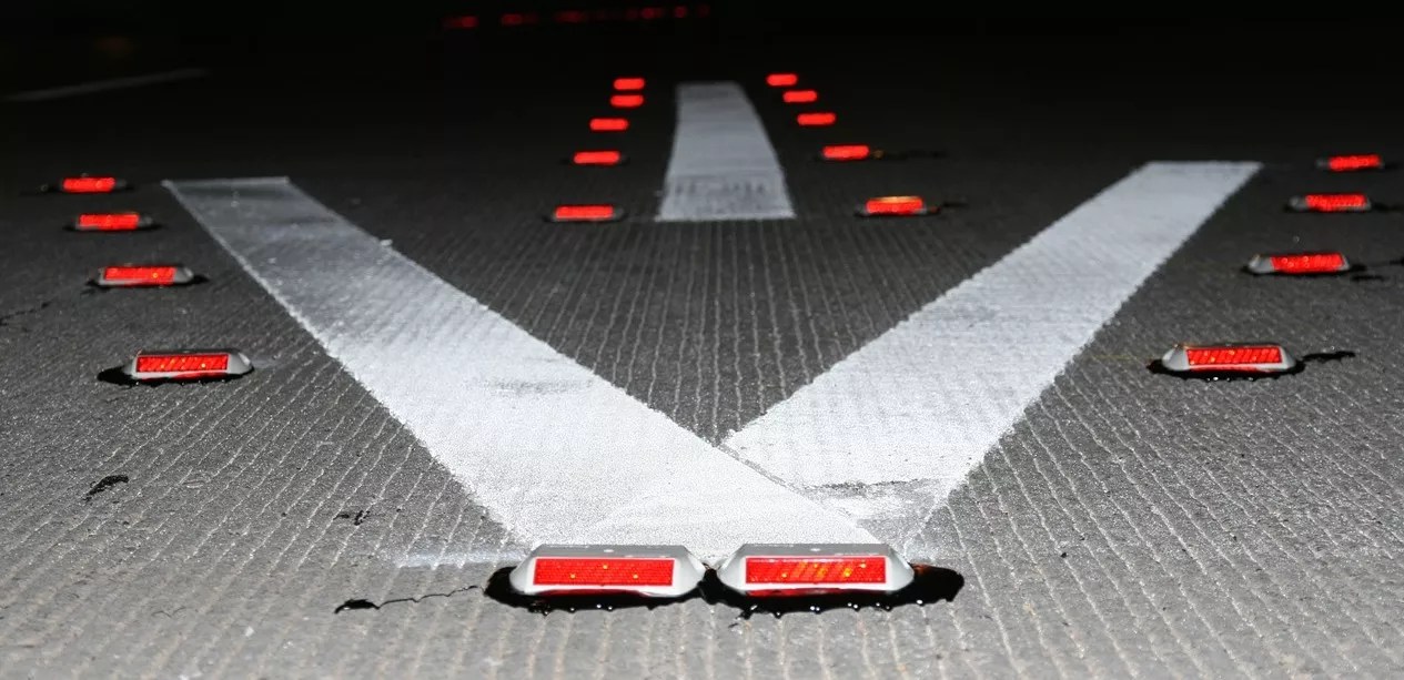 If you are on a freeway ramp and you see a big white arrow pointing at you with red reflector lights all along it, that, too, is a hint.