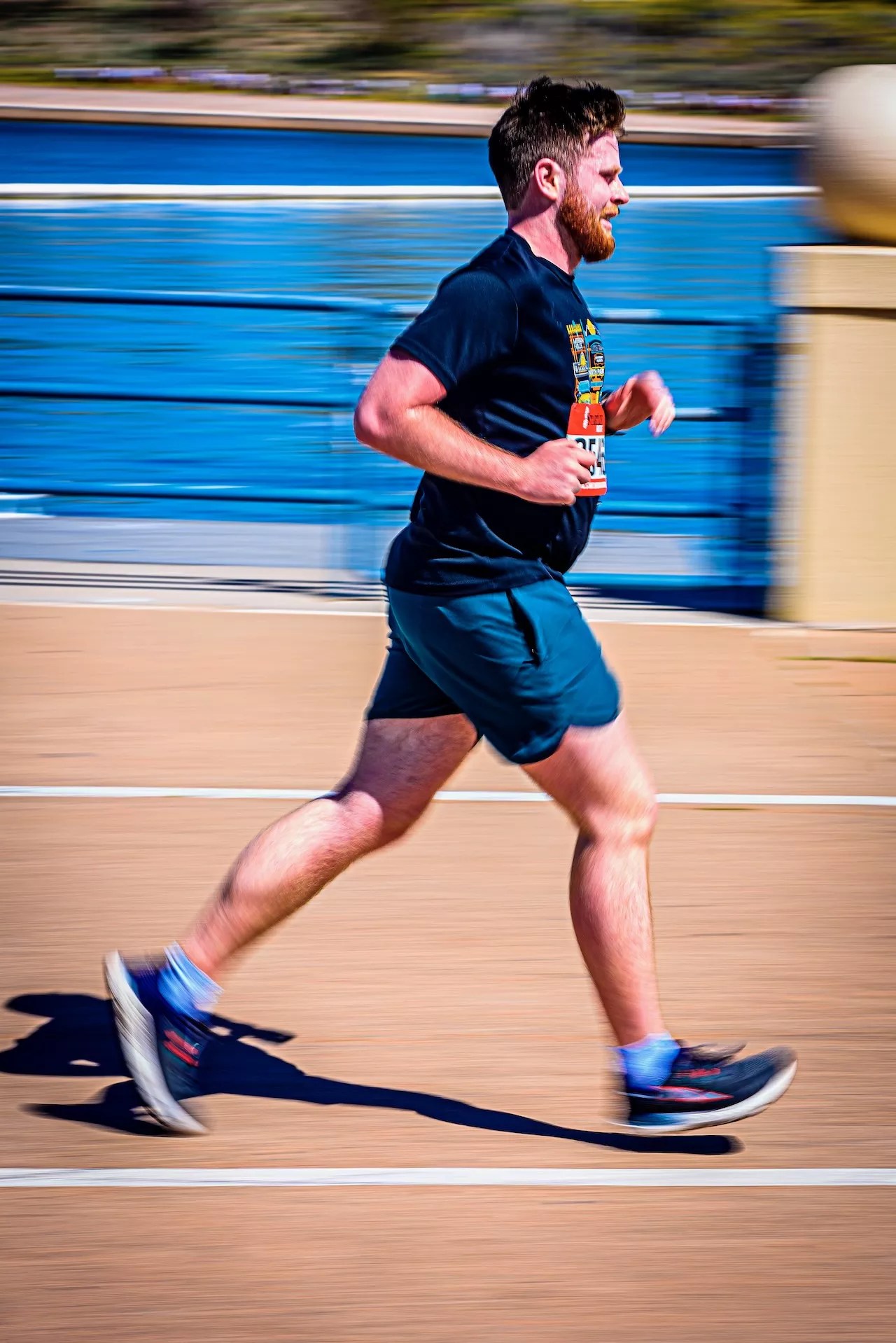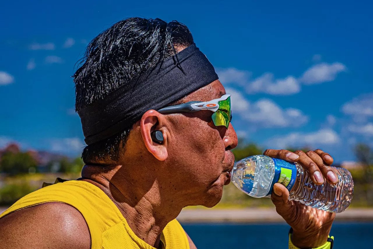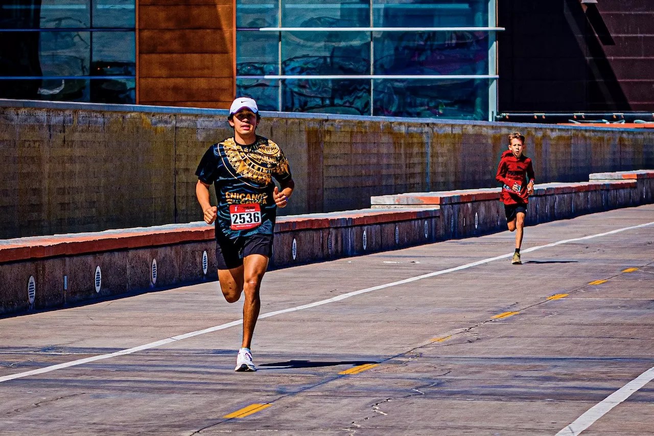 A reflection of Tempe buildings appears in a runner’s sunglasses.