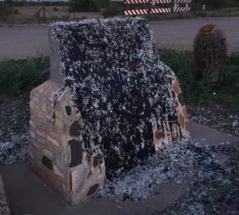 A stone monument of the president of the Confederate States, Jefferson Davis, was apparently tarred and feathered on Jefferson Davis Memorial Highway near Apache Junction.
