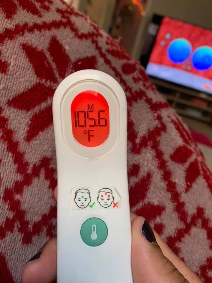By midday, her temperature had reached 105 degrees Fahrenheit. She lay on the couch, weak and crumpled.