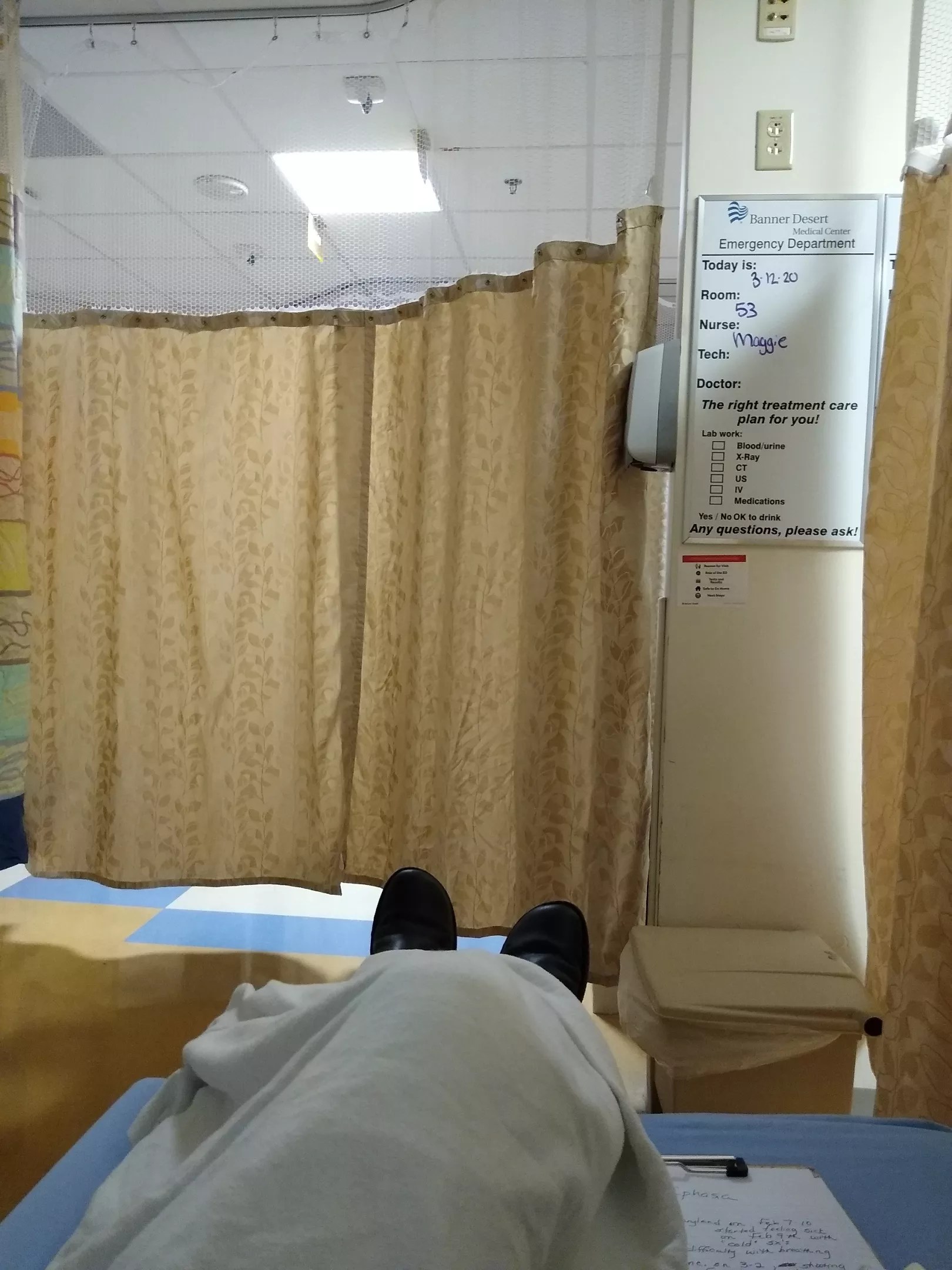 The view from a Banner Desert Medical Center emergency room bed on March 13.