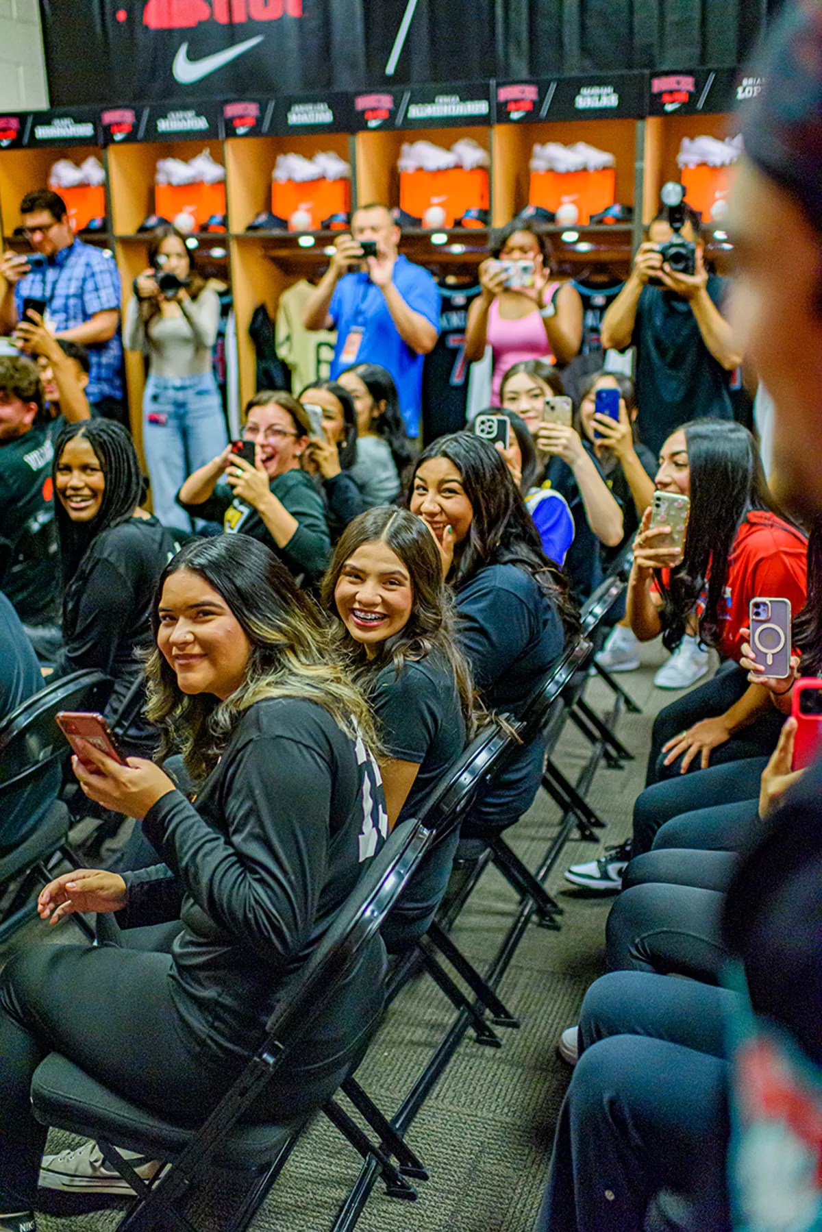 Softball players enter the locker room, where a surprise of custom Diamondbacks gear awaits them.