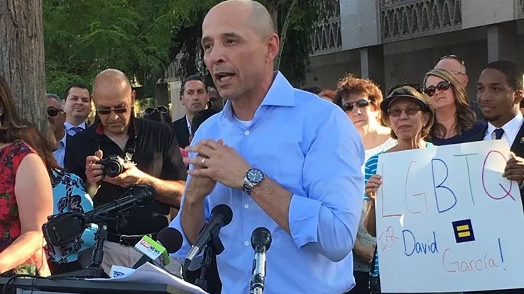 University professor and Democrat David Garcia fired up a crowd of cheering supporters at the State Capitol on Wednesday afternoon with his news that he would run against Governor Doug Ducey in 2018.