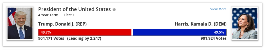 8:50 p.m.: Harris and Trump now neck-and-neck