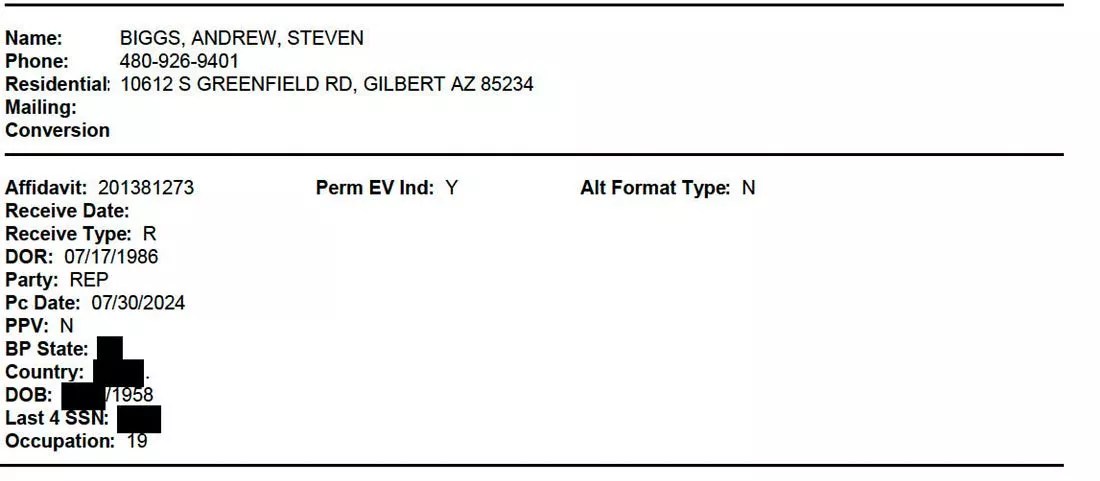 Biggs has been on Arizona’s permanent early voting list since at least 2006 and has cast nearly all of his ballots by mail, including in the 2020, 2022 and 2024 elections.