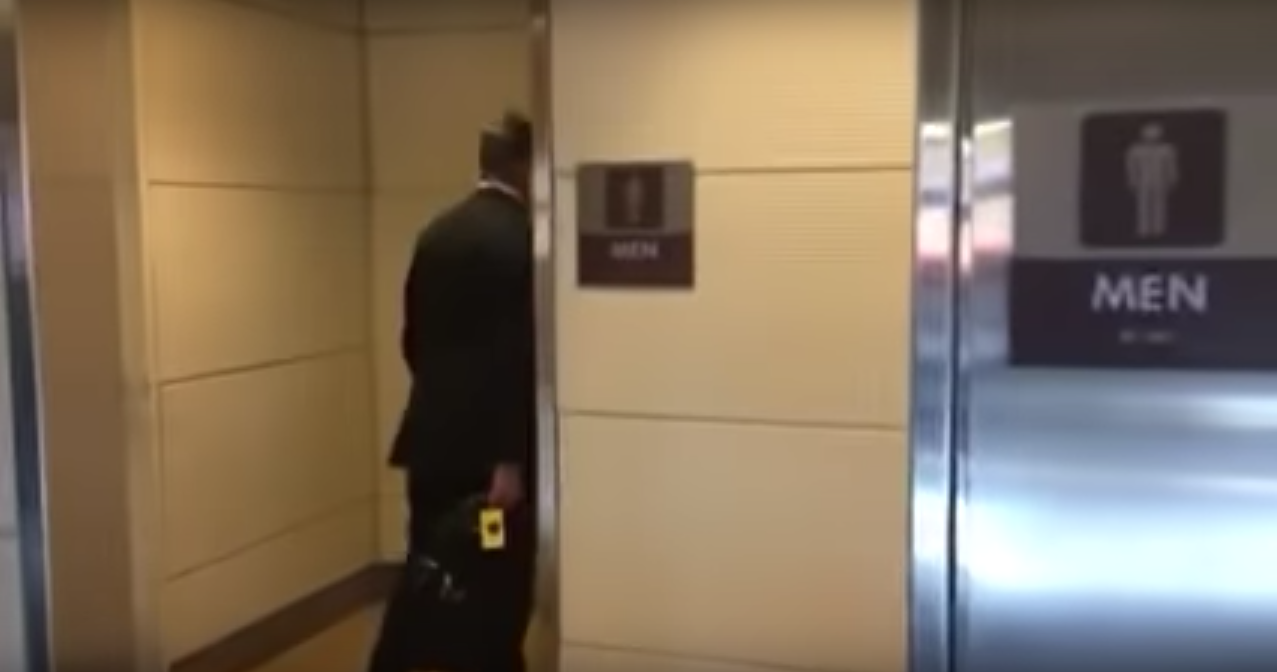 Moments later, Perdue ducks into a men’s bathroom to escape, as Blanc calls after him.