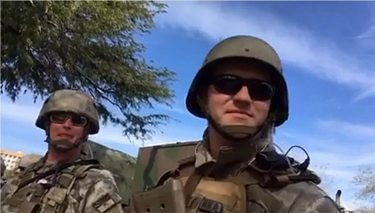 This is not Wilson’s first go-around when it comes to militias. A photo from 2013 featuring Wilson appeared on the FB page of notoriously unhinged desert rat Robert Crooks, leader of Arizona’s “Mountain Minutemen,” of which Crooks seems to be main member.