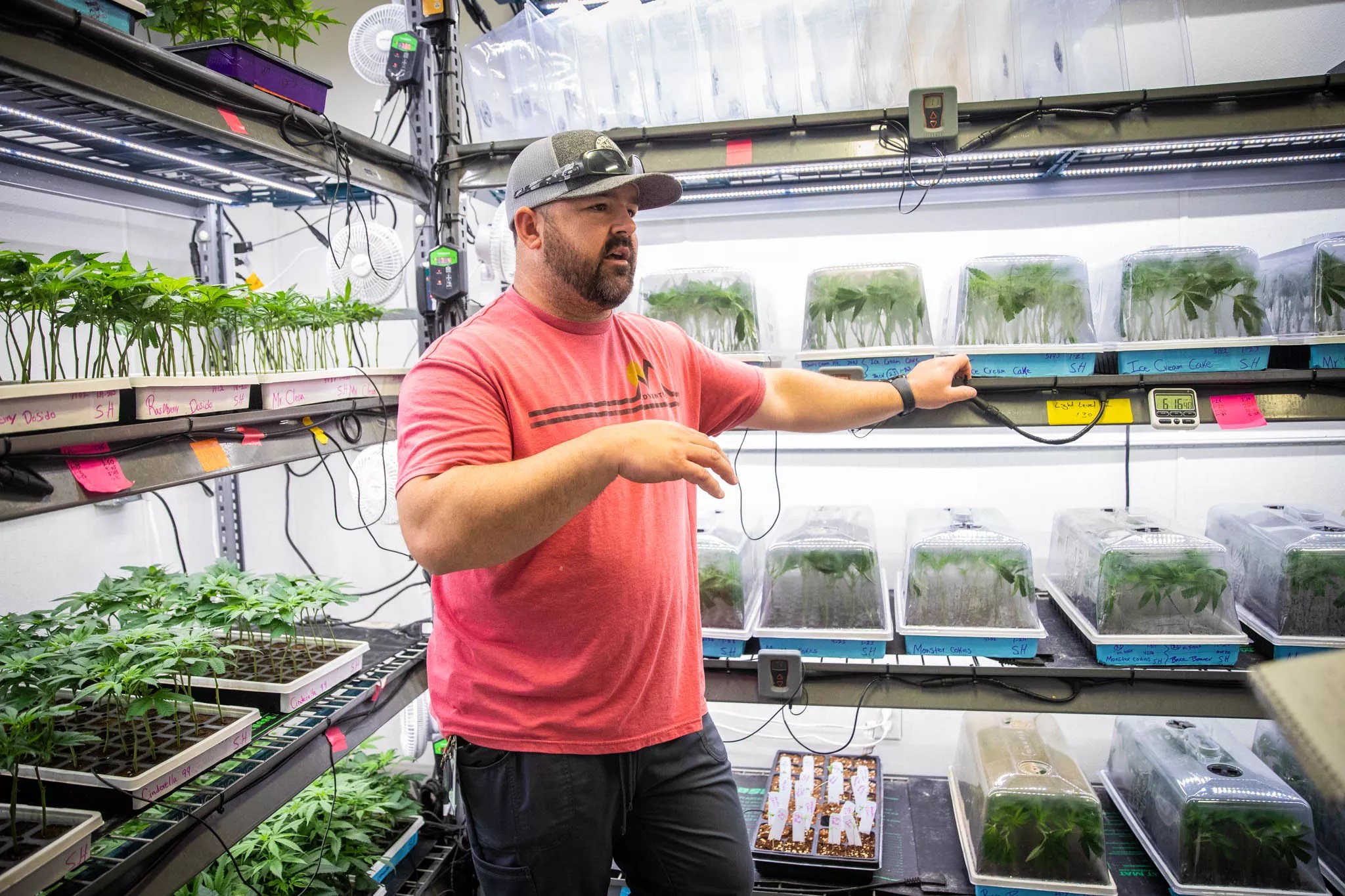 Harvest State Cultivation Manager Josh Barnhart stands in the clone room of the company’s Camp Verde cultivation facility, where vegetative cuttings grow their first roots.