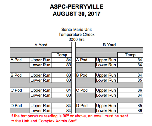 “We need to find out if they have actually ever transferred a prisoner to a unit where the temperature is 85 degrees or less,” Fathi said. “That’s what they’re required to do, but we don’t know if they’ve ever done it in the two-and-half years of the stipulation.”