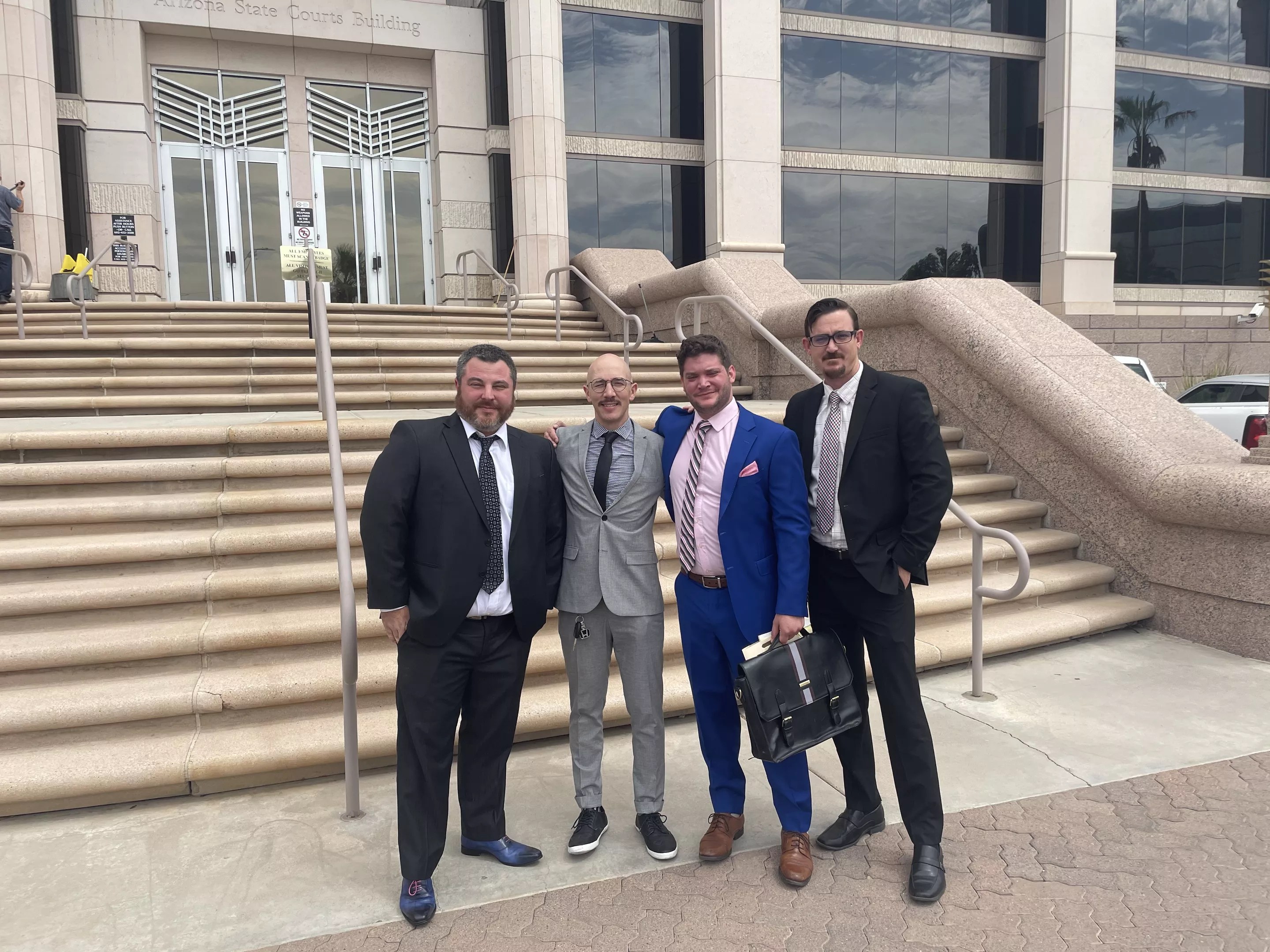 Left to right: Stone Law Firm founder Craig Rosenstein, Daniel Santillanes, Derek Debus, lawyer Steve Scharboneau.