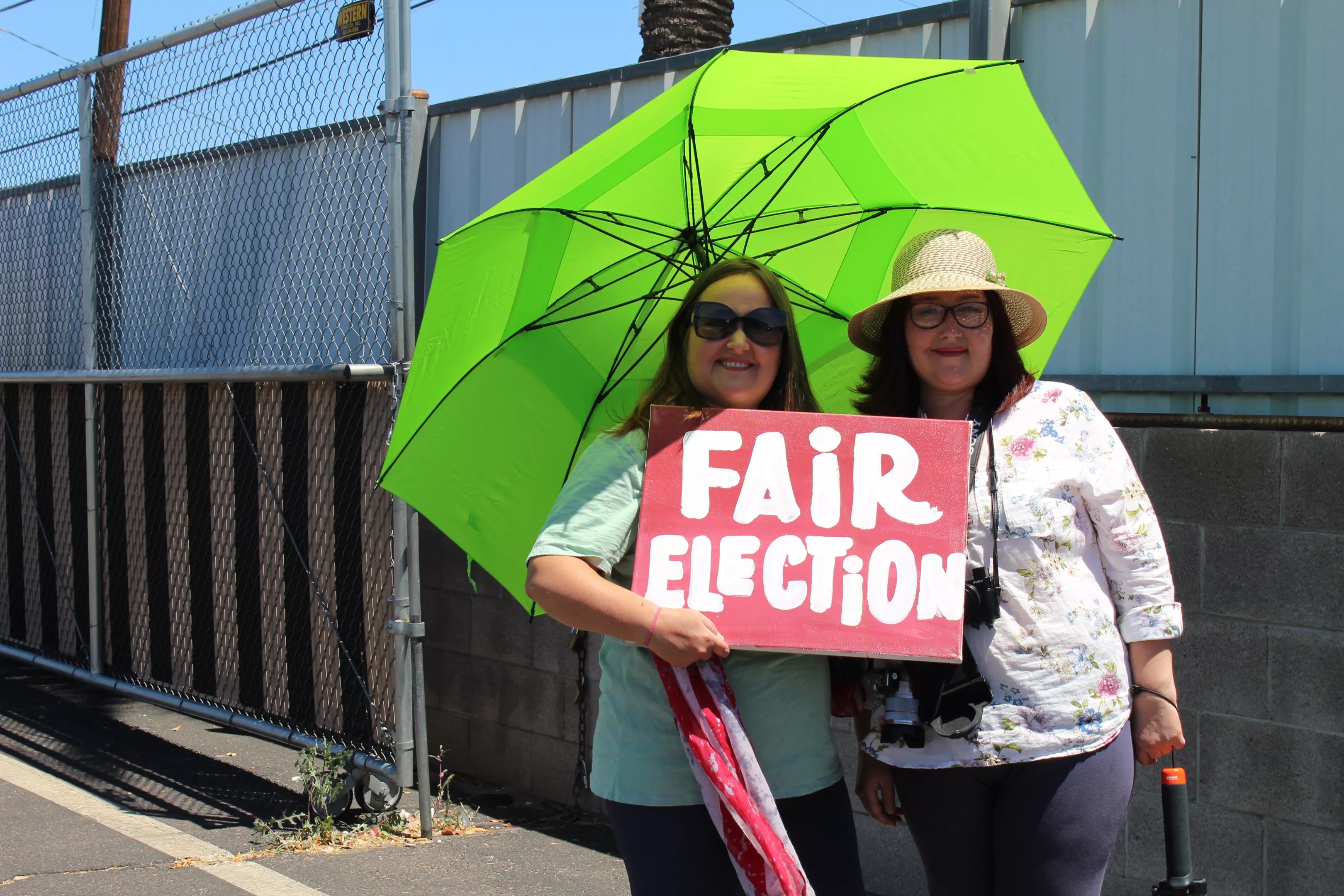 Marina and Elena from Phoenix, who declined to give their last names, were among a small group of people who gathered at the Fairgrounds on Thursday in support of the audit.