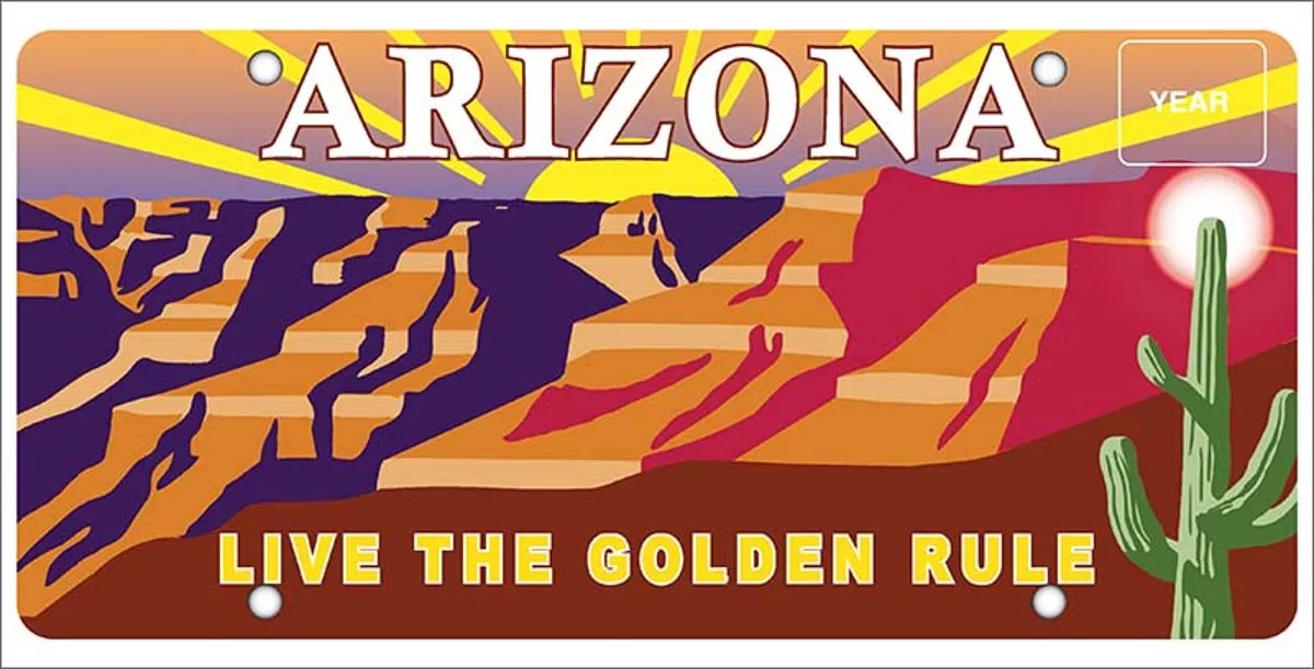According to ADOT, proceeds from the purchase this plate go to a special fund administered by the state Department of Education “for programs which demonstrate the promotion of the golden rule in schools and communities in Arizona.” Whatever that means.