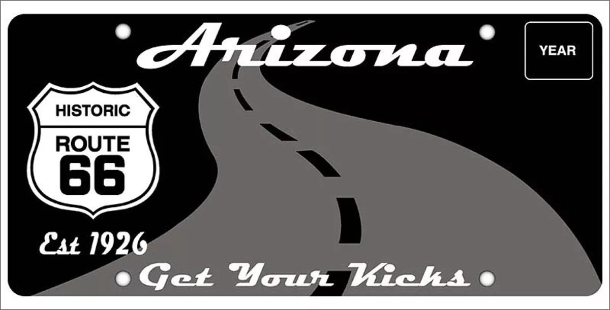 This is a good plate. Arizona is home to the largest unbroken stretch of Route 66 in the country, and fees for this design help fund the Historic Route 66 Association of Arizona.