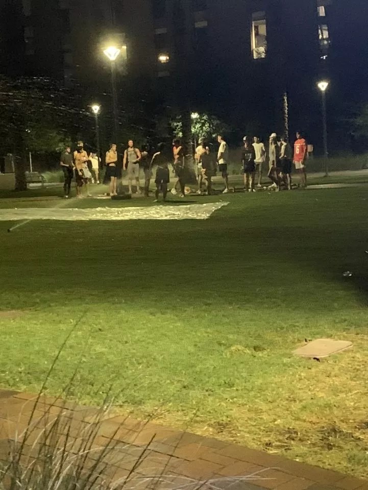 Students gathered around a slip-and-slide Tuesday night. ASU’s president announced there were 161 cases associated with the university the same day.