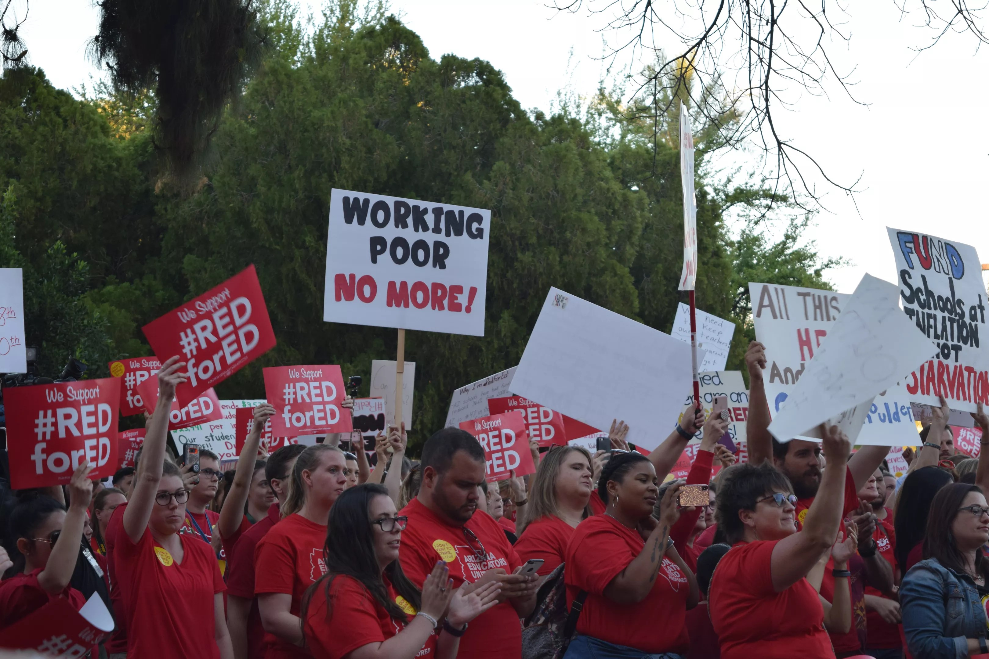 Last week, thousands of teachers converged on the State Capitol, where AEU leaders announced their formal demands: a 20 percent raise in base pay, school funding to compensate for the millions of dollars that were cut after the 2008 recession, and increased compensation for education support professionals.