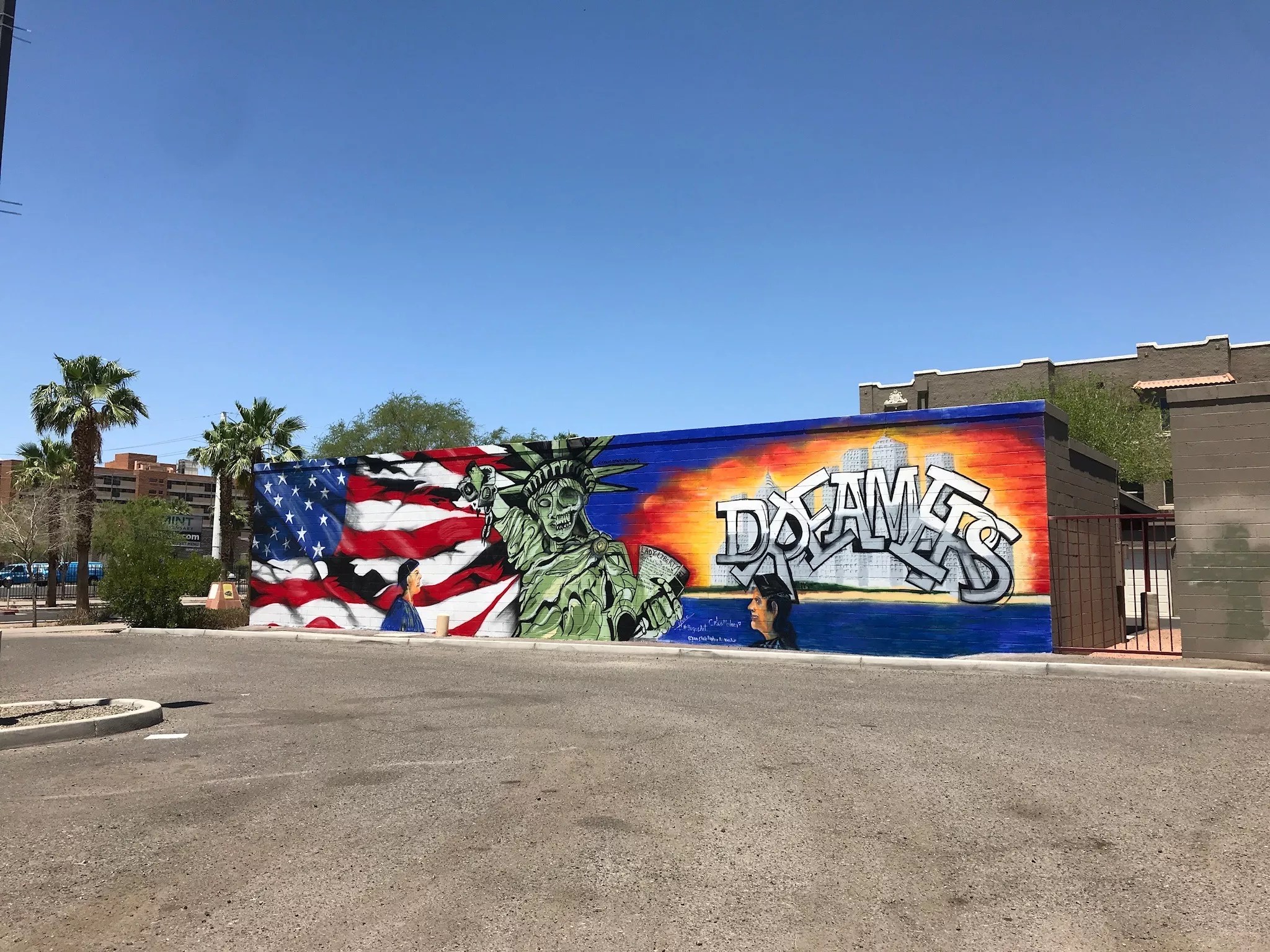 This Hugo Medina mural is located off the Lincoln Family YMCA parking lot.