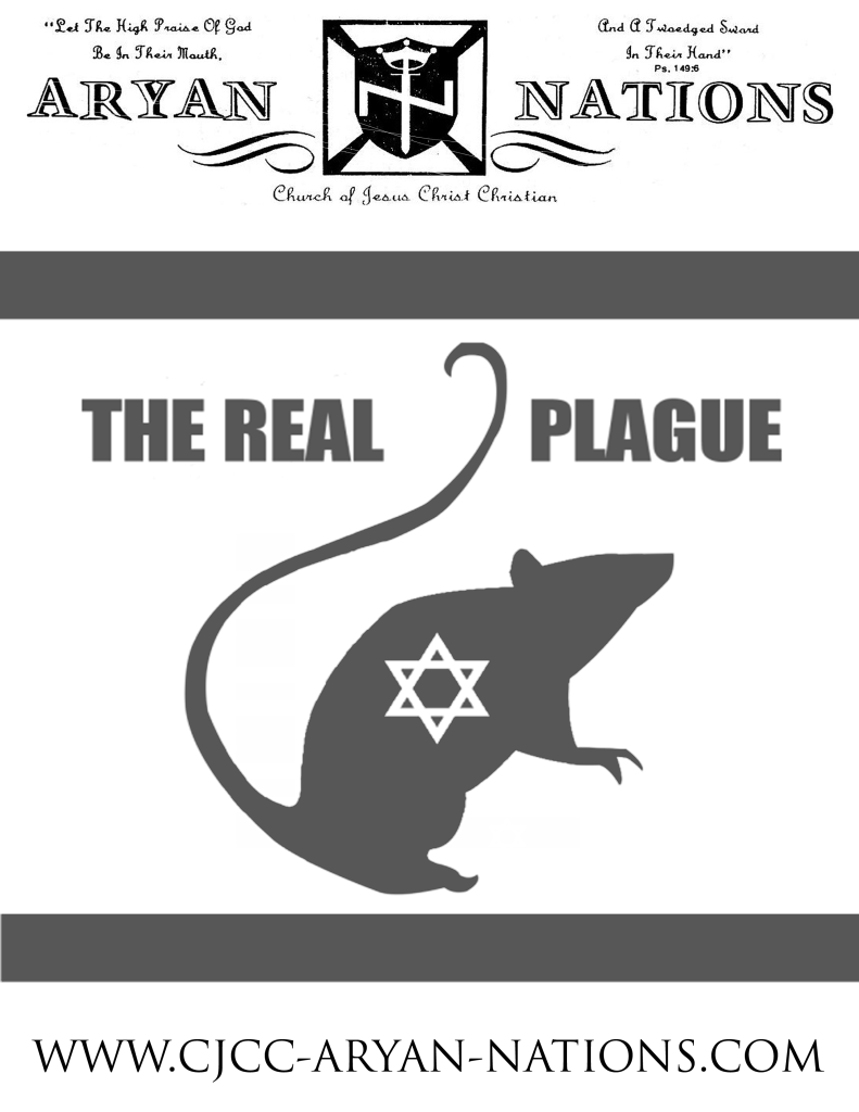 Aryan Nations leans heavily on the conspiracy theory that the white race is “endangered” and that, without resorting to violence, Aryans will be killed off by Jewish people who are also pedophiles.