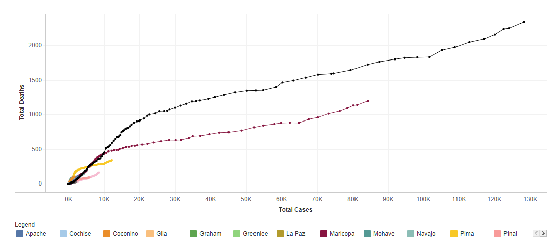 LaBaer and his team have been tracking the trends in cases both in Arizona and nationwide and he said that while the number of new daily cases is starting to flatten slightly, Arizona is still on course for more suffering – just not as quickly.
