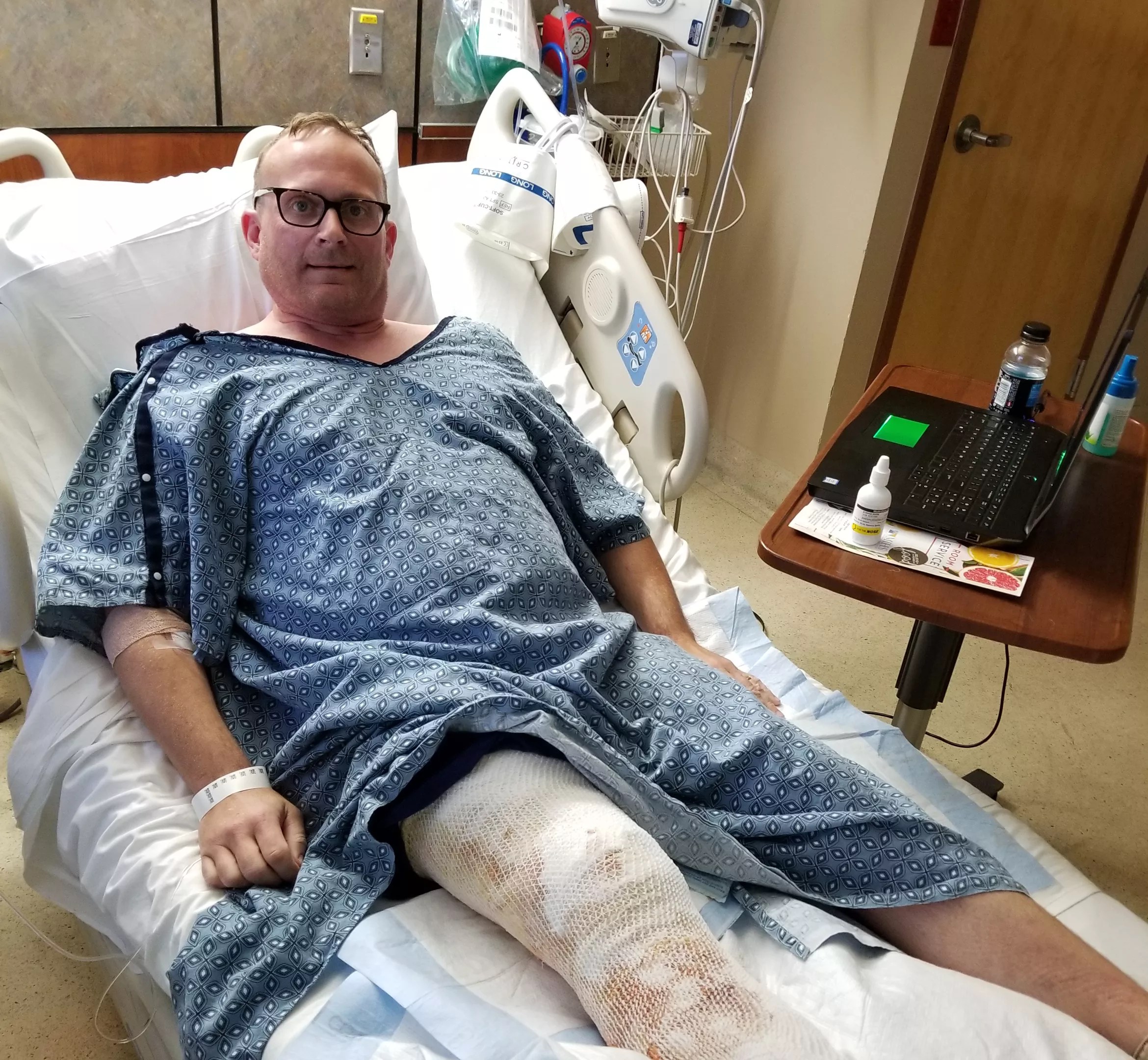 Approximately 38 percent of the skin on his leg was burned, the doctors told him. Since Tuesday, Kimmel has stayed in a hospital that has the ability to handle burns, his wife said. Doctors performed surgery on his leg using pig skin as a graft to treat his burns.