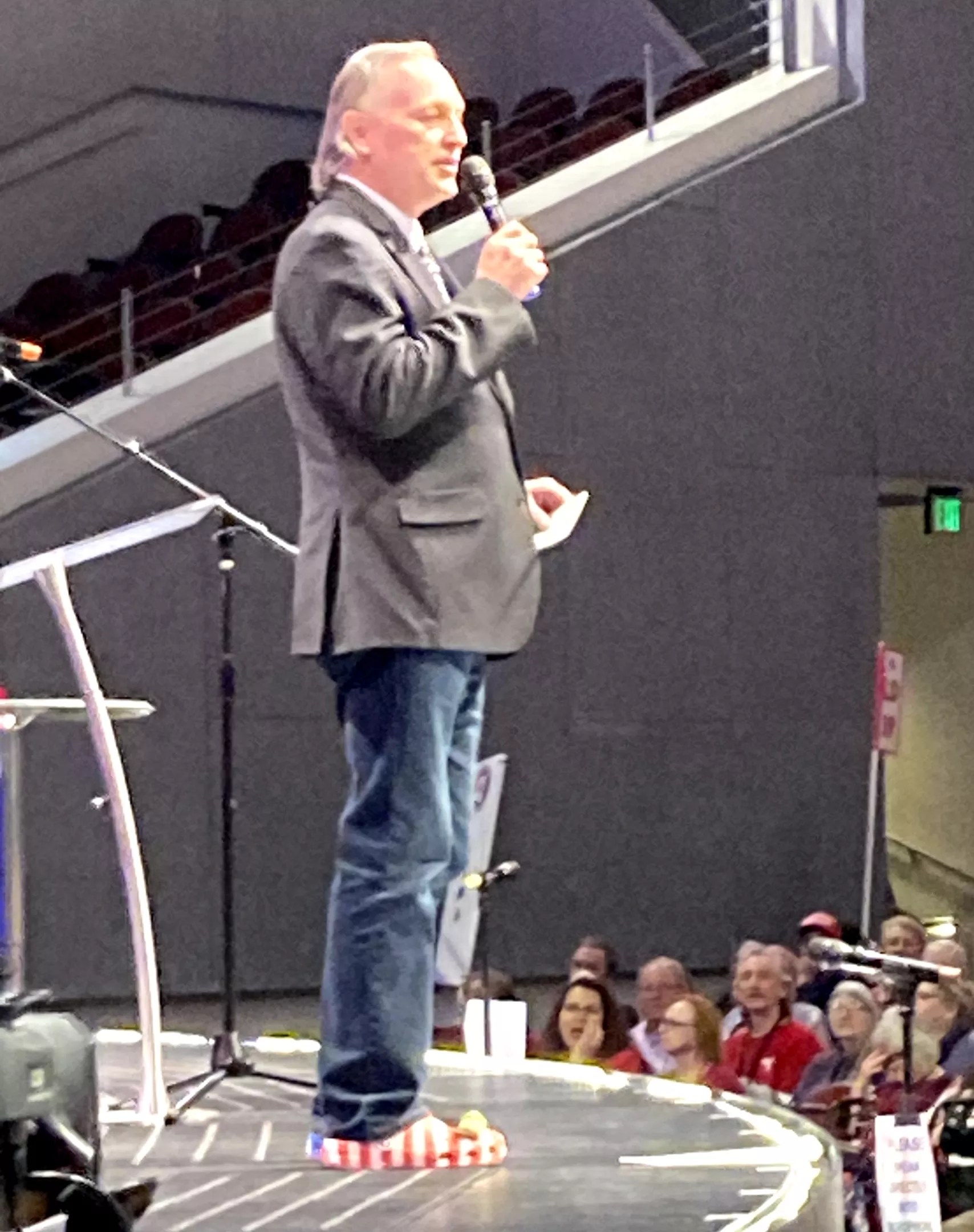 Wearing red-white-and-blue Crocs and sporting a mane of long, gray hair that he joked he wouldn’t cut until “Congress cuts spending,” Biggs, 66, told the audience of nearly 1,800 Republican state committee members that the public’s response to a recent “statement of interest” in running for governor that he recently filed with the Arizona Secretary of State’s Office had been “overwhelming.”