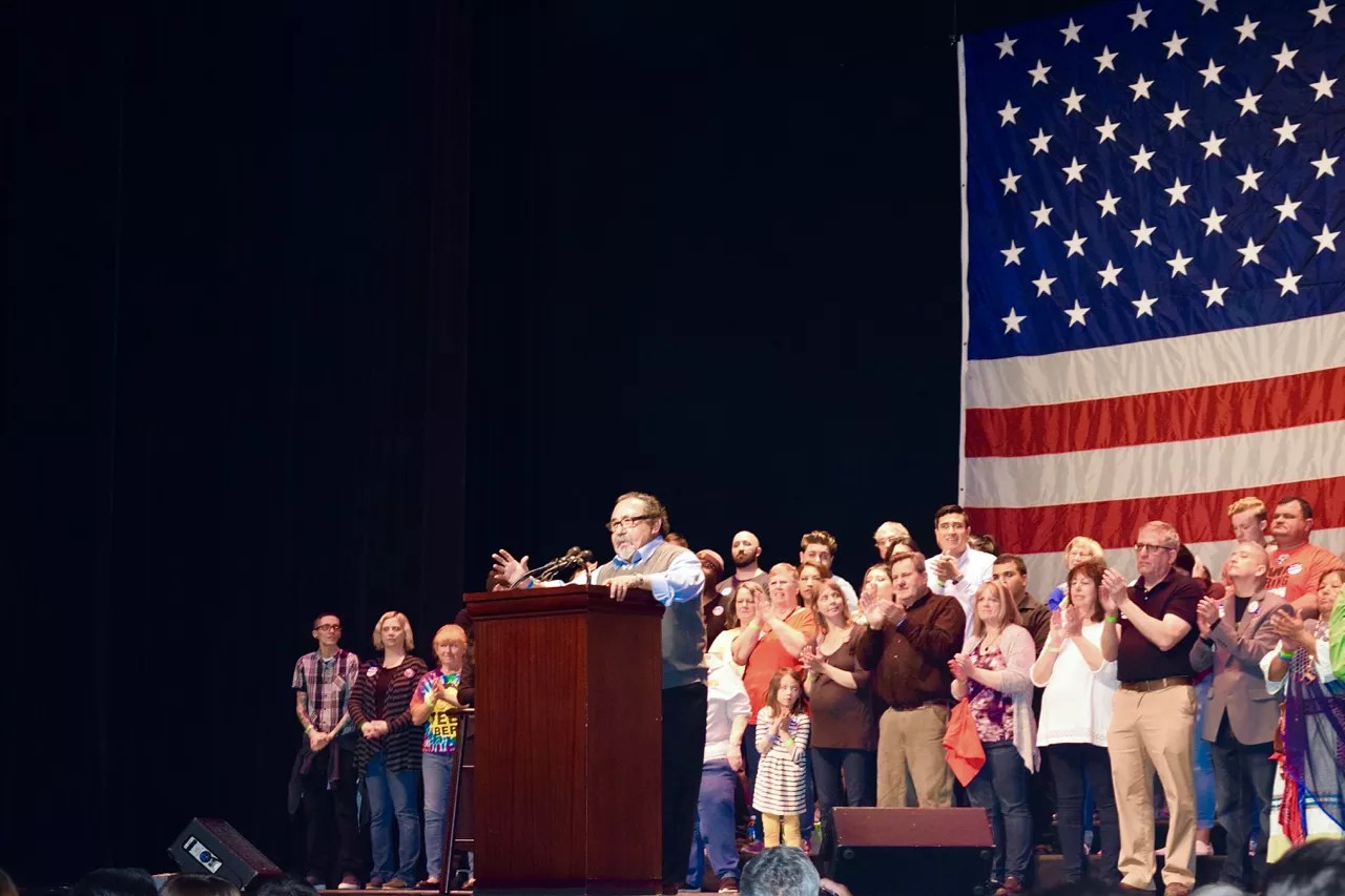 Arizona Congressmen Raul Grijalva, pictured, and Ruben Gallego gave speeches before Sanders took the stage.