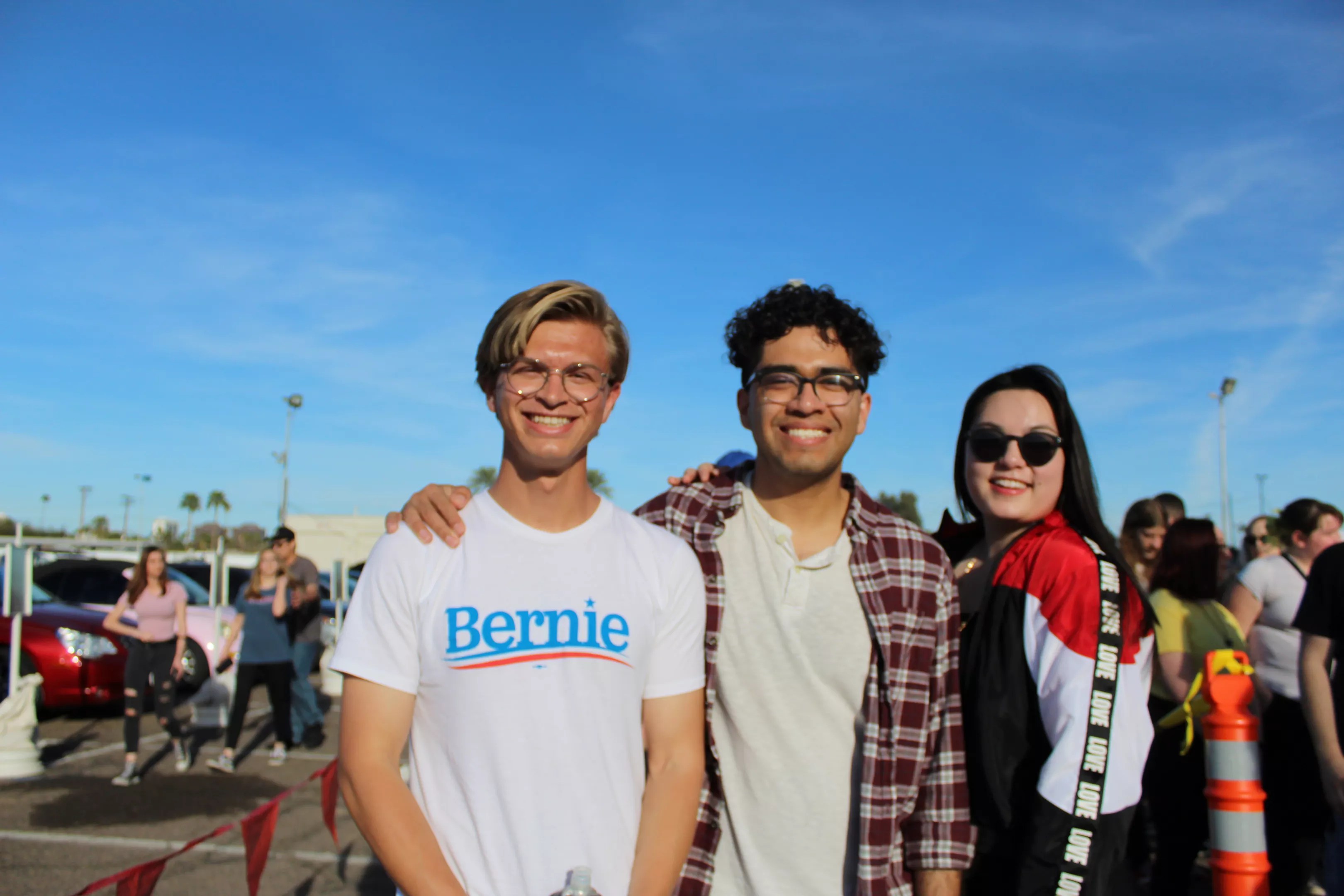 A diverse, youthful crowd of Sanders supporters gathered to hear the independent senator speak at the Arizona Veterans Memorial Coliseum on Thursday, filling about two-thirds of the 14,000 capacity venue. The turnout was nevertheless a stark contrast to the packed stadium when Republican incumbent President Trump took the same stage three weeks before.