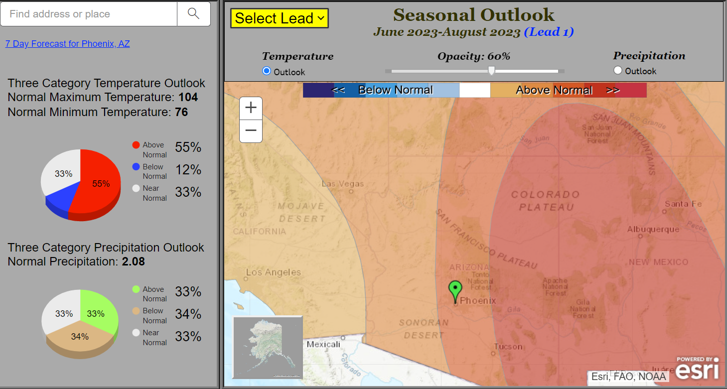 Phoenix, too, is likely to see above-average heat. The city is forecast to see a daily maximum temperature this summer of 104 degrees.