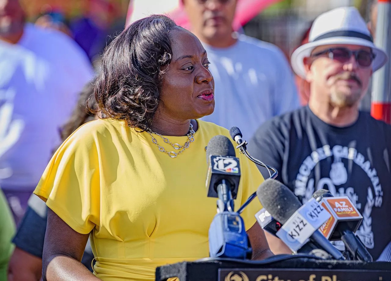Phoenix District 8 Council member Kesha Hodge Washington speaks at the unveiling of Michael Carbajal Way. The city council voted on the street name change in March.