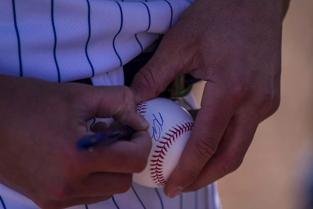 “I didn’t see any fans when I was pitching,” he continues. “I was so focused on the game. So it’s great to get to interact with them now.”