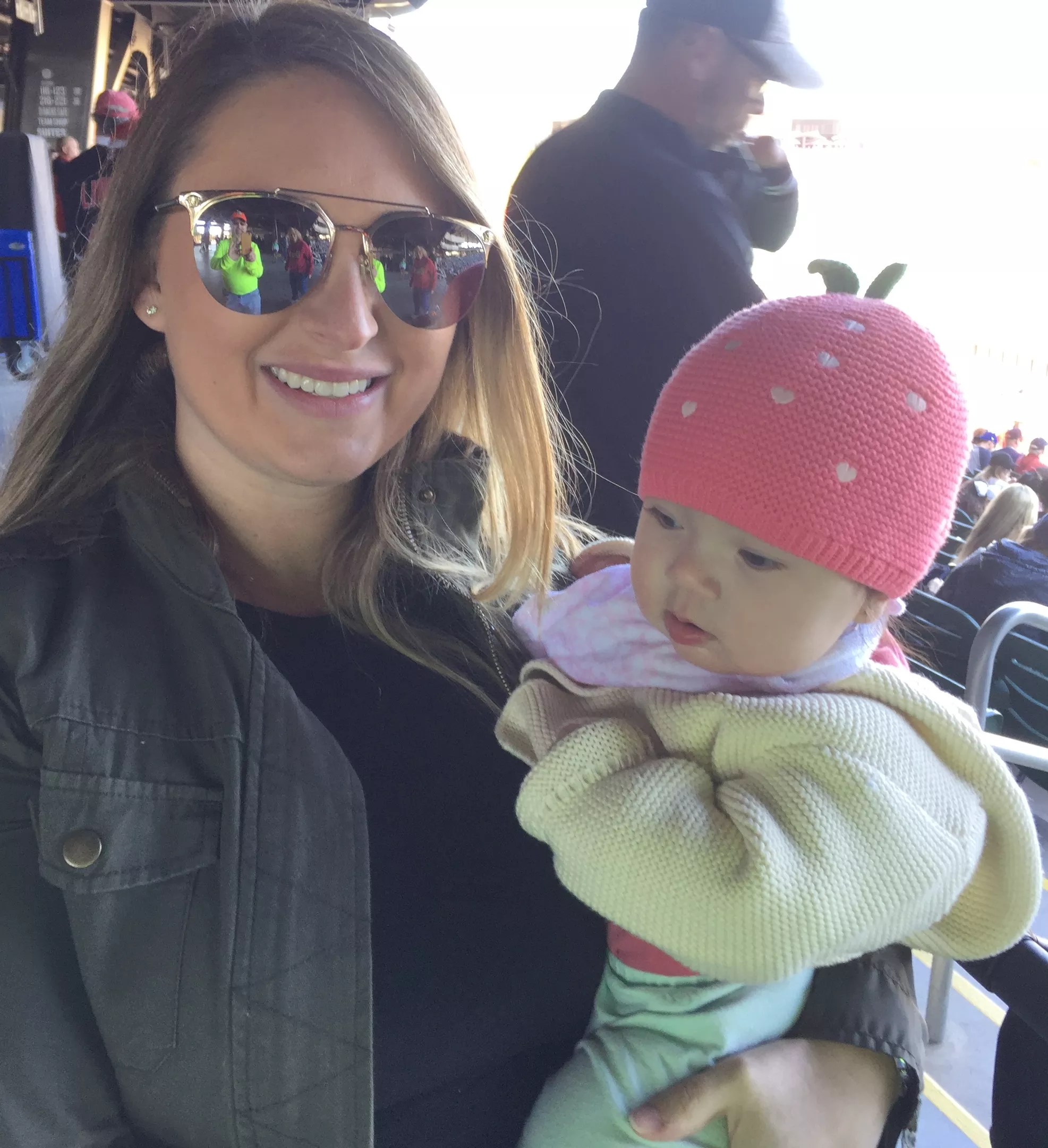 But as my photographer tries to take her picture before she leaves, Sofia keeps turning her head toward the field. Obviously, she wants to watch some more baseball.