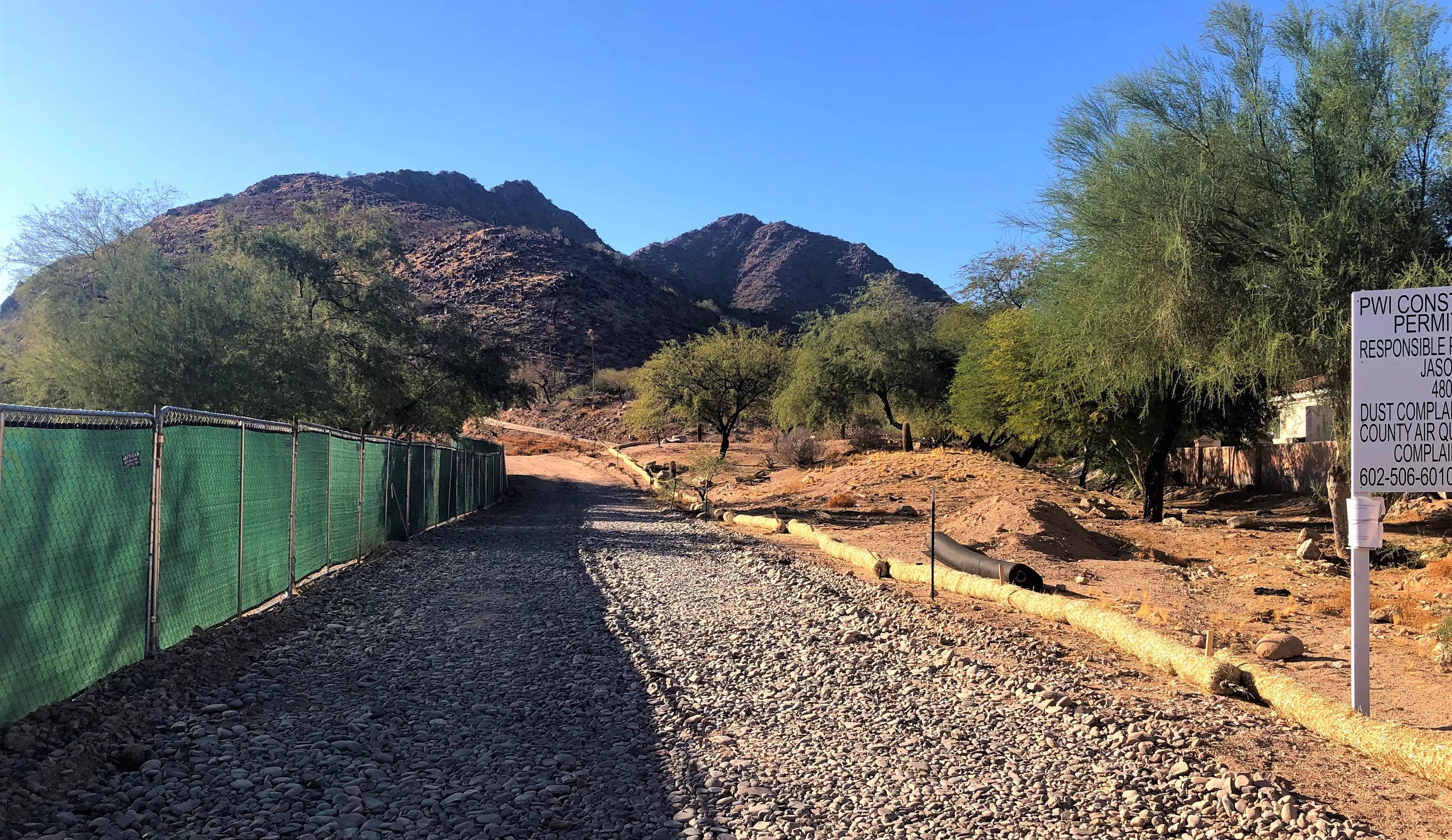 The new trailhead will likely take this route, now a construction road, to plug into Cholla Trail.