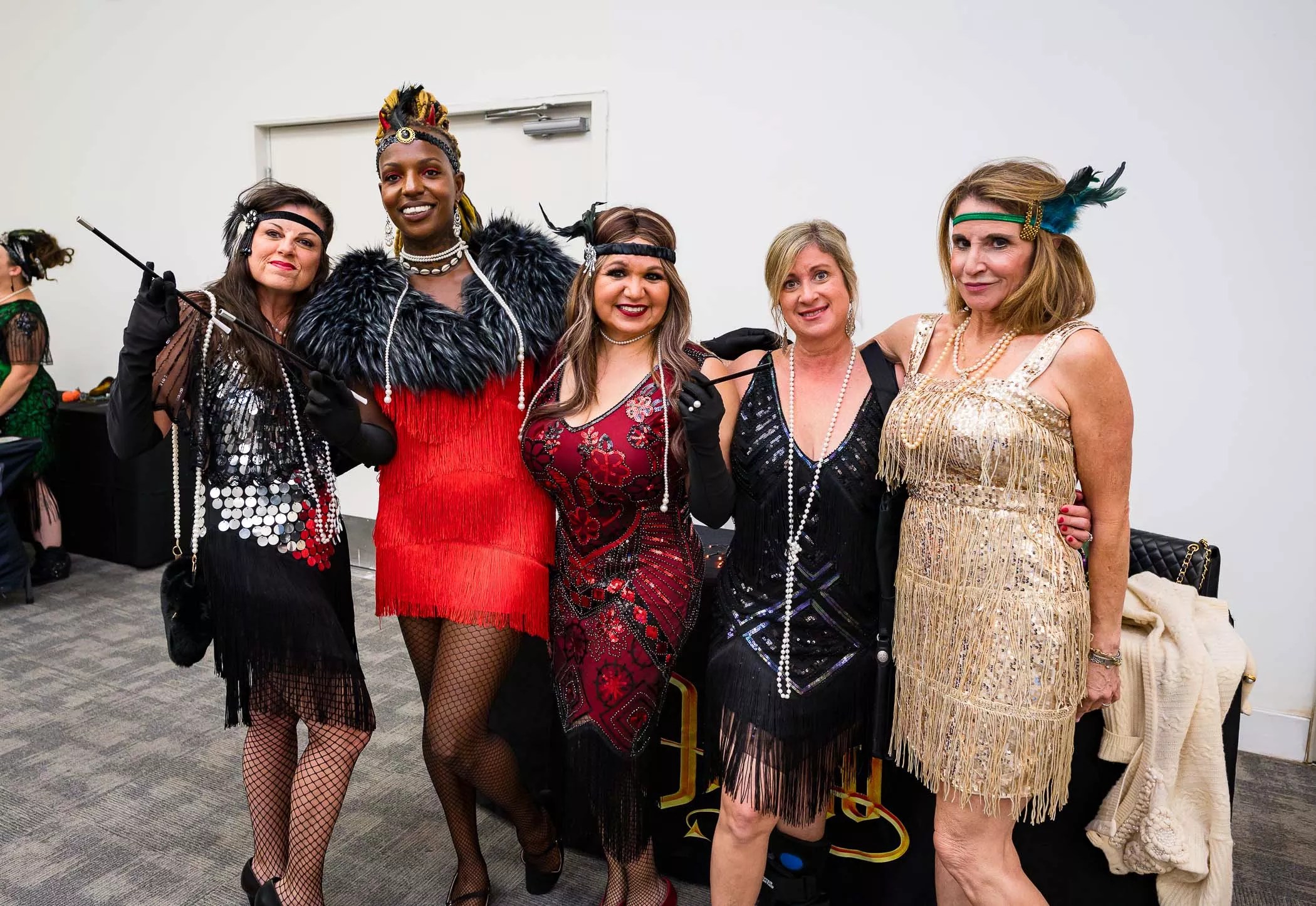 Barbie, Lillian, Lilia, Janie and Jodie capture the spirit of the Roaring ’20s with their feathered headbands and flapper dresses.