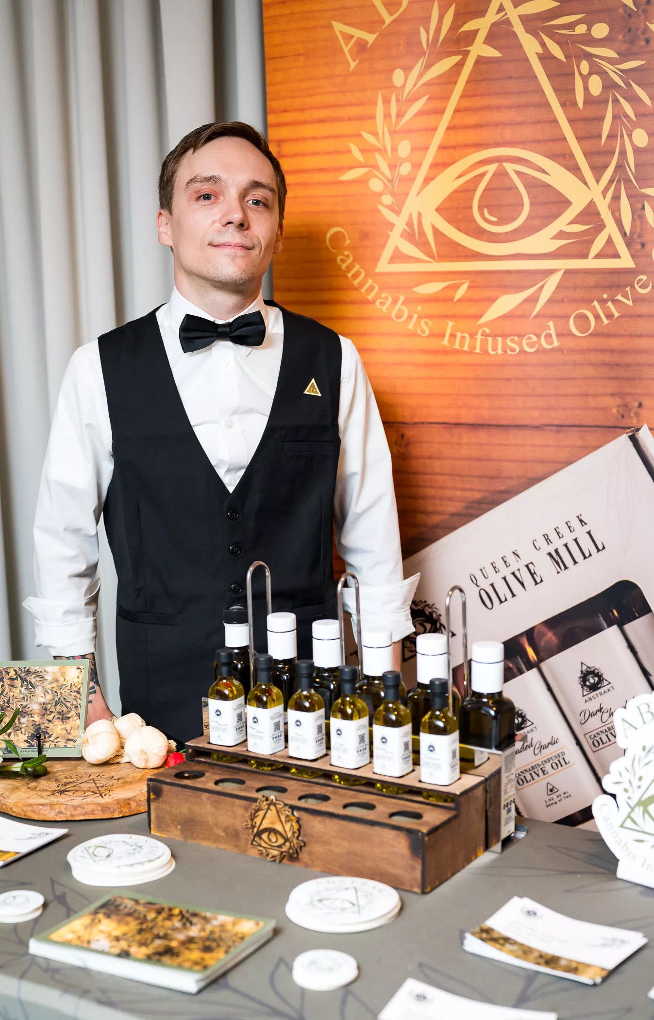 Kyler Boswell informed and educated guests about Abstrakt’s recent collaboration with Queen Creek Olive Mill and their new line of cannabis-infused olive oil.