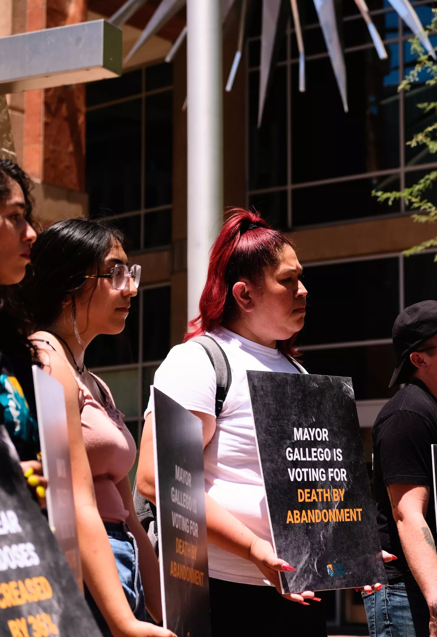 “People are dying because they don’t have enough food. They can’t access cool air. They can’t access water. They can’t access shelter. That’s where we need to be investing. Into our people, into our communities,” said Anna Hernandez, an activist whose brother was shot and killed by Phoenix officers in 2019.