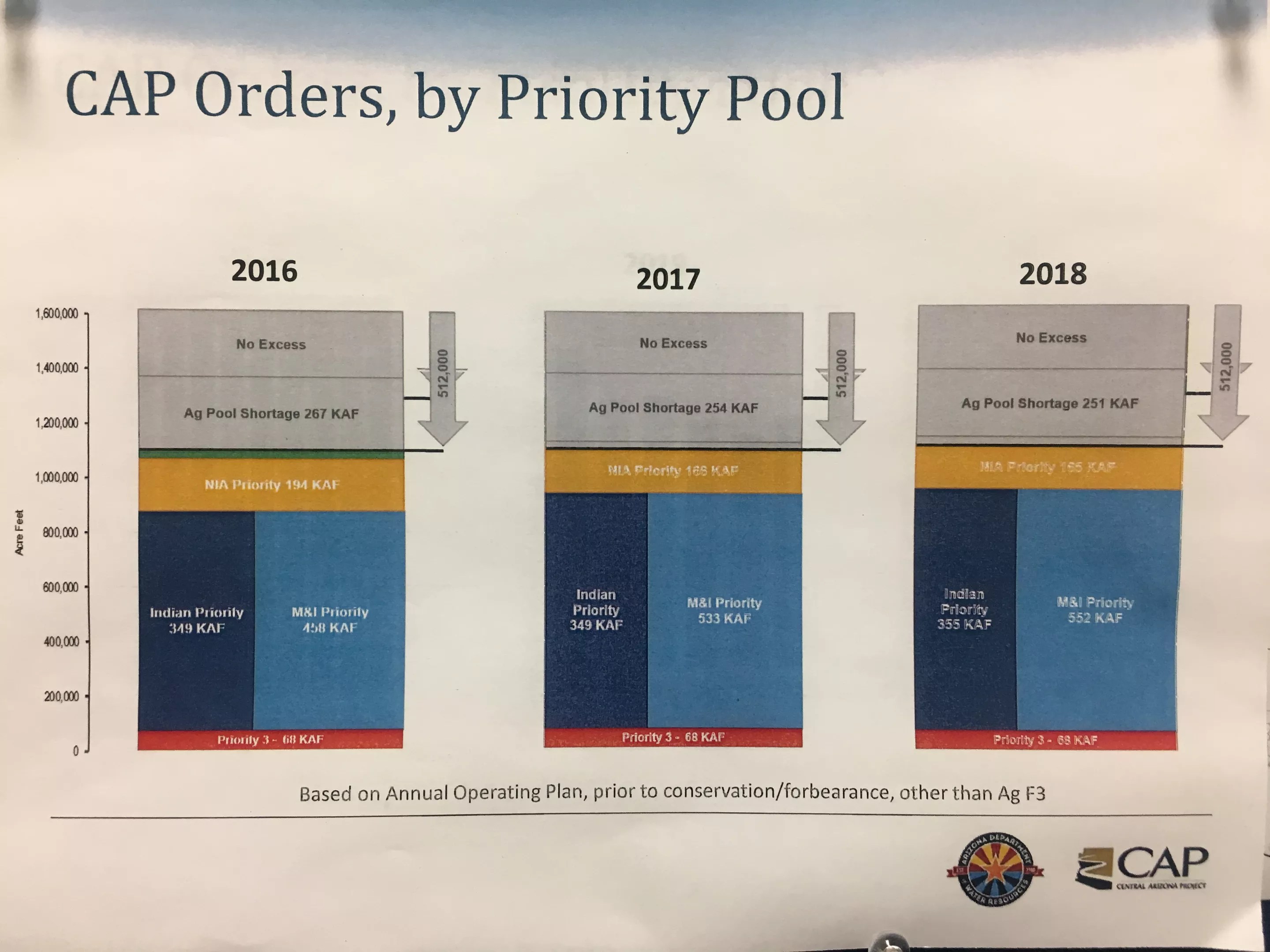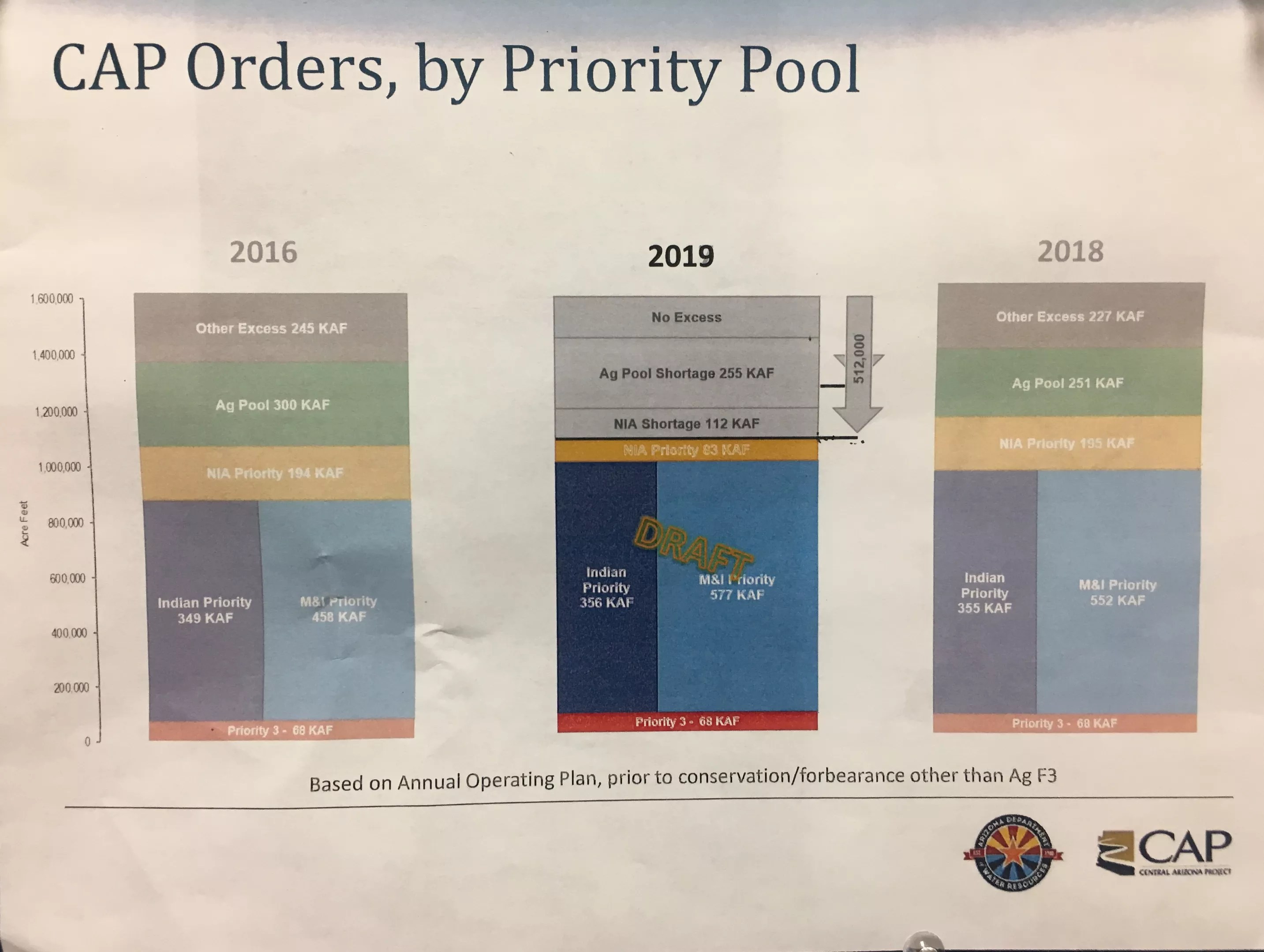 “I don’t think CAP has updated that chart in several years, and in several years, the ordering pattern of the highest priority users has changed,” said Campbell. “We’ve know for several years that [the Drought Contingency Plan] was potentially coming, and we were going to face potential shortages and cuts.”