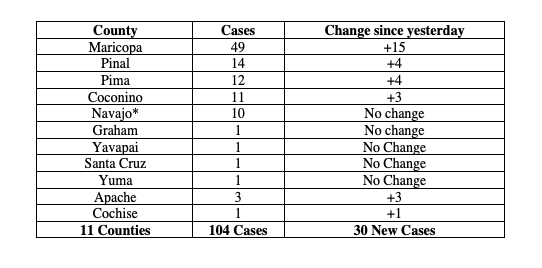 This story recaps the biggest developments related to the COVID-19 outbreak from the past several days. For detailed case-by-case information on all of Arizona’s 104 coronavirus cases, read our running list.