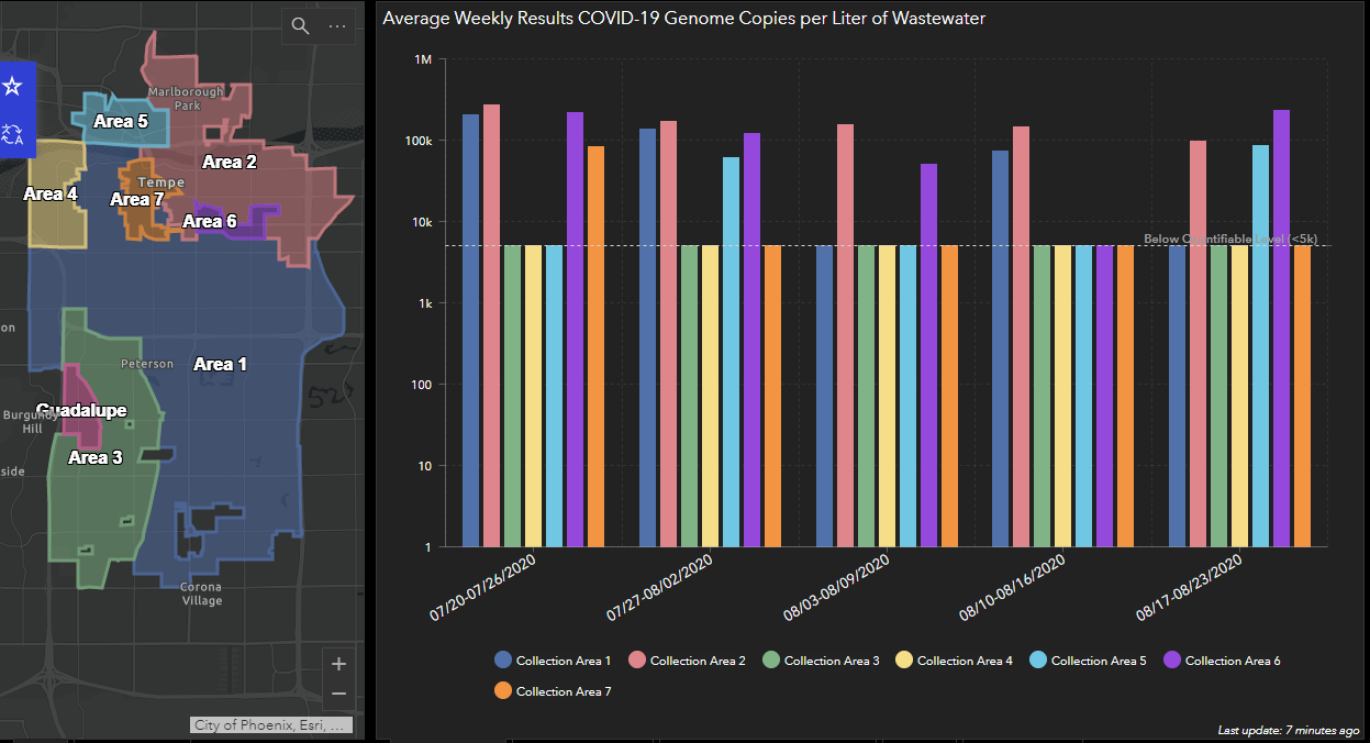 The City of Tempe’s dashboard indicates the prevalence of COVID-19 in wastewater.