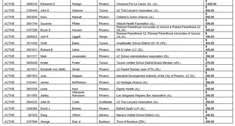 Edmundo Hidalgo, president and CEO of Chicanos Por La Causa, donated $1,000, the highest of the lobbyists on the list.