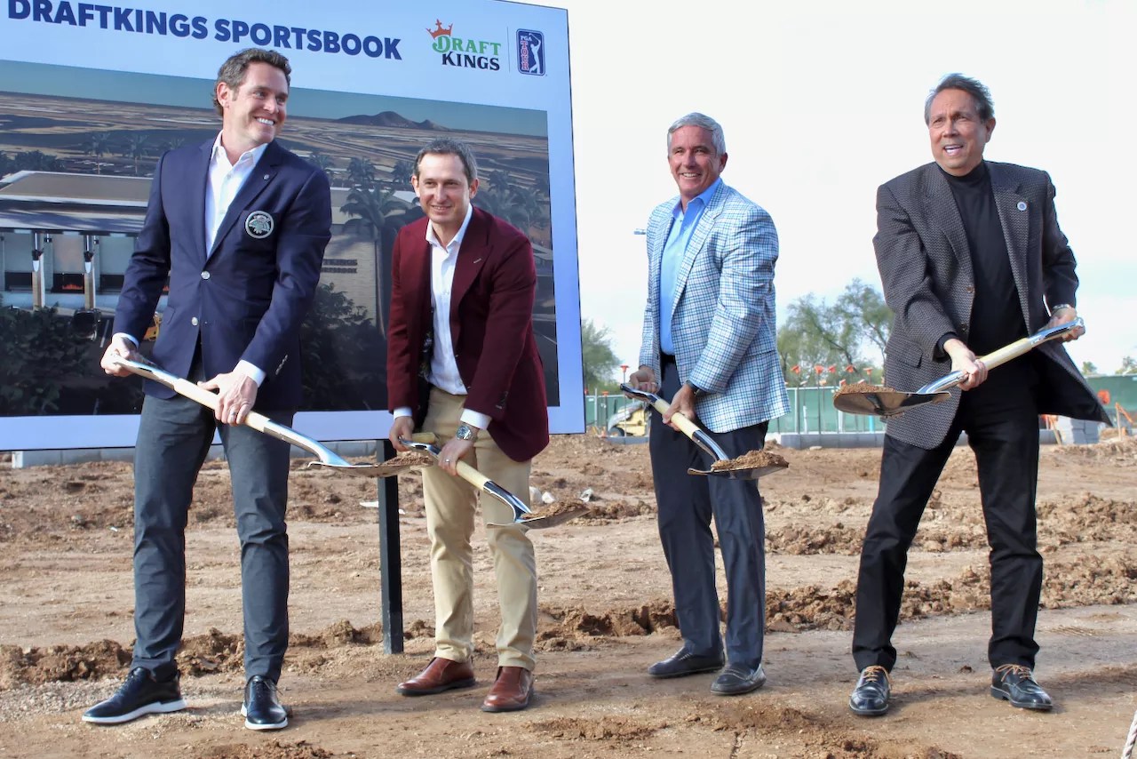 Executives from the PGA Tour and DraftKings plunged shiny shovels into the desert soil to officially break ground on a retail sportsbook location slated to open in October. It's the first retail sportsbook to be built at a golf course in the U.S.