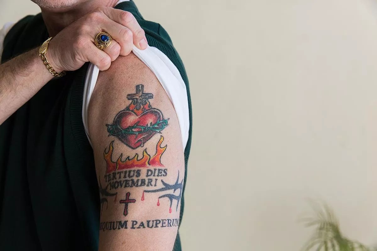 Jeffries had his left arm tattooed with the Latin phrase Obsequium Pauperum (obedience to the poor). Later, as a successful businessman, he began adding the title KM, for Knight of Malta, to his name.