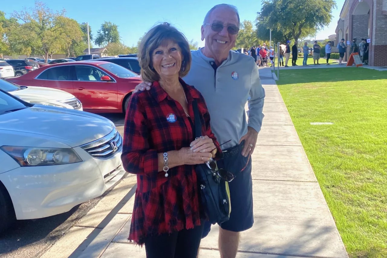 Joanne Smith and Sam Nicolosi carpooled to a Mesa polling place inside The Church of Jesus Christ of Latter-day Saints on Tuesday.