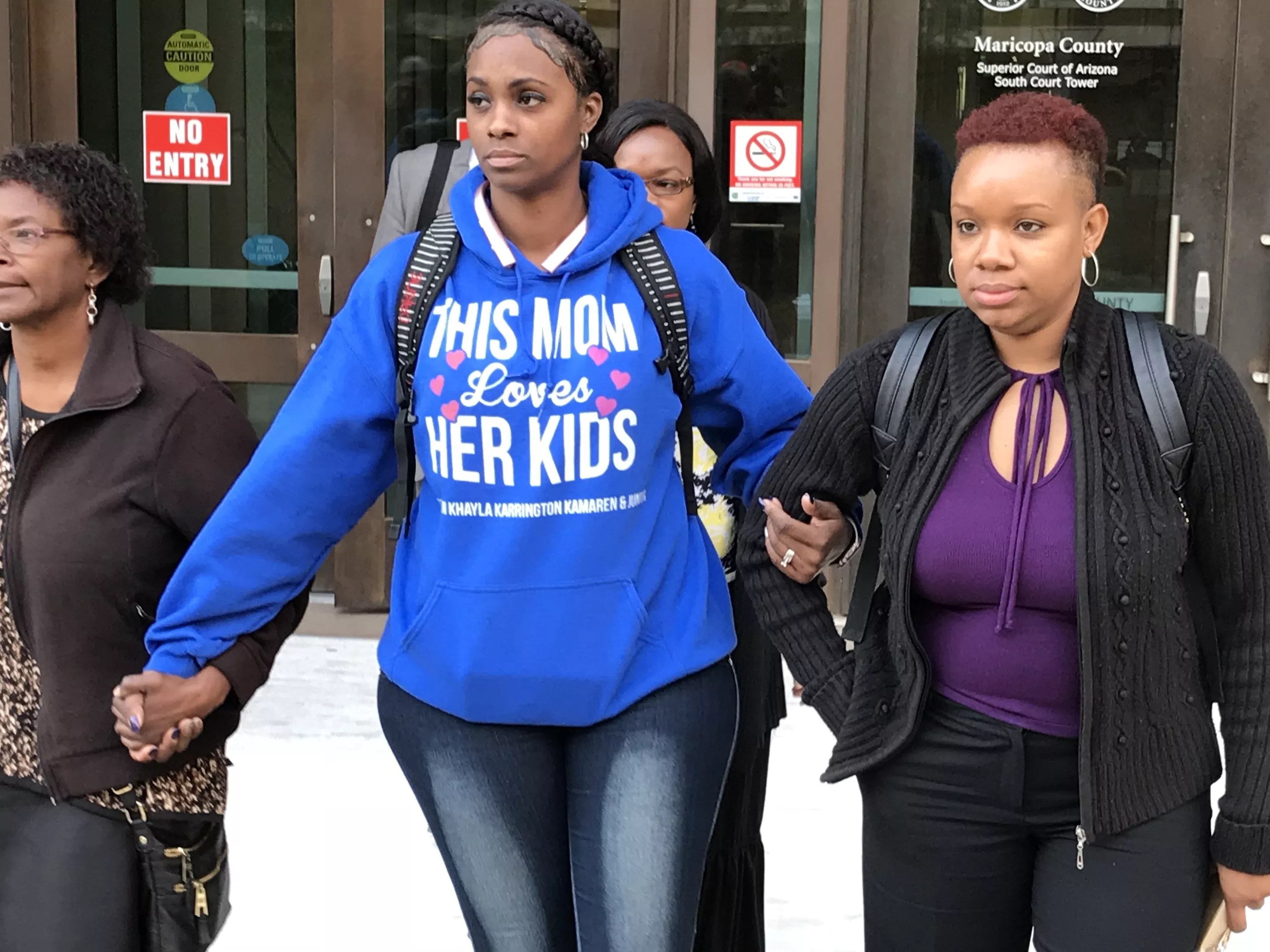 Tuesday both were due in Maricopa County Superior Court for an arraignment, a routine five-minute hearing to enter a not-guilty plea and to determine whether to hold or release the suspects.