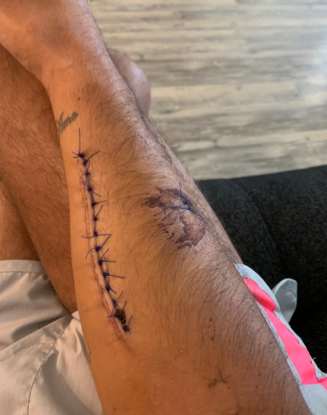 “It was so fast,” he said. “I just remember looking at my arm and blood started coming out of my arm super-fast. I didn’t feel pain. I just remember holding my arm saying, ‘I’m hit, I’m hit.’ I was in shock.”
