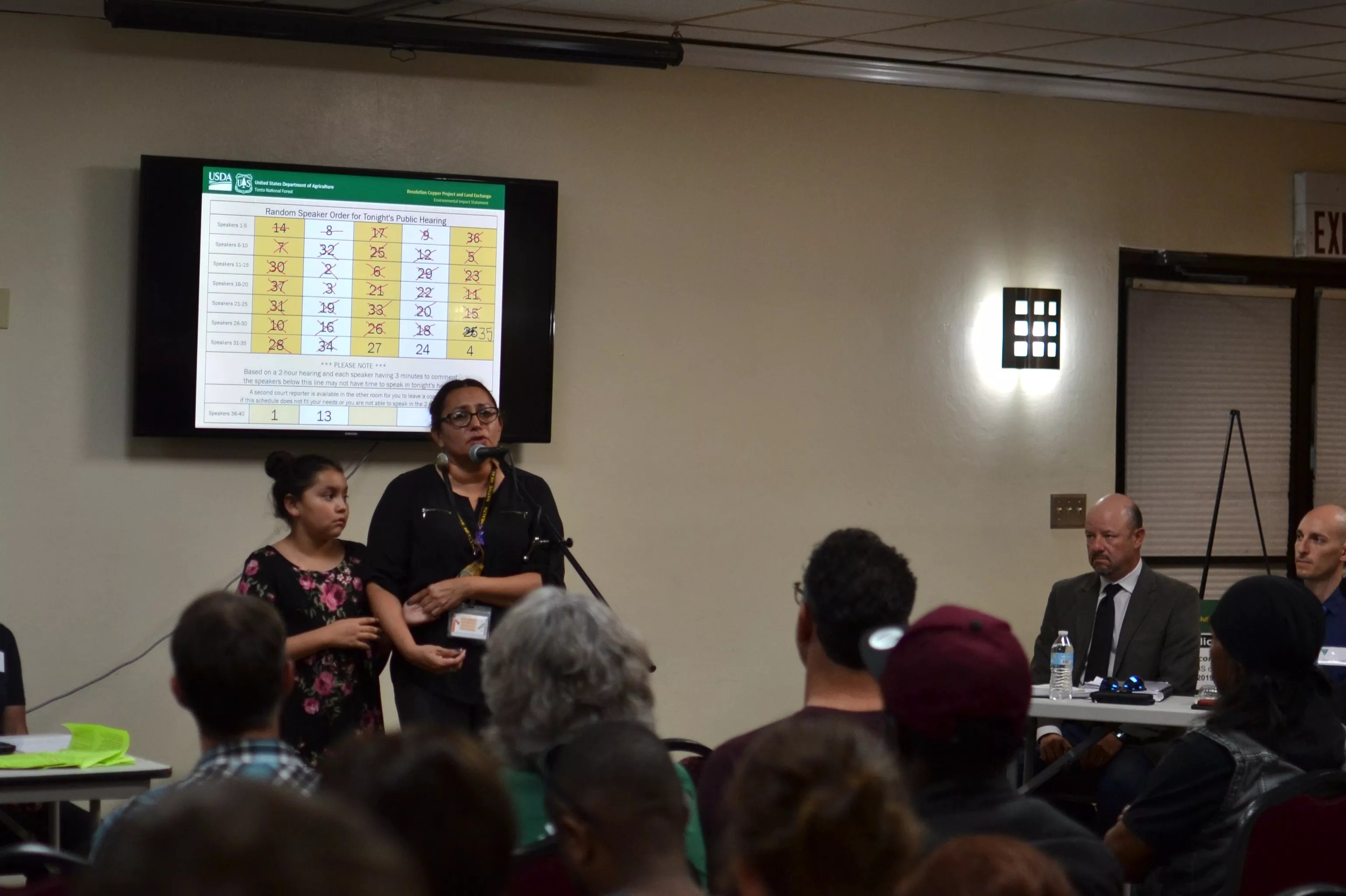 Dr. Leann BigHorse and her daughter at the public hearing in Tempe.