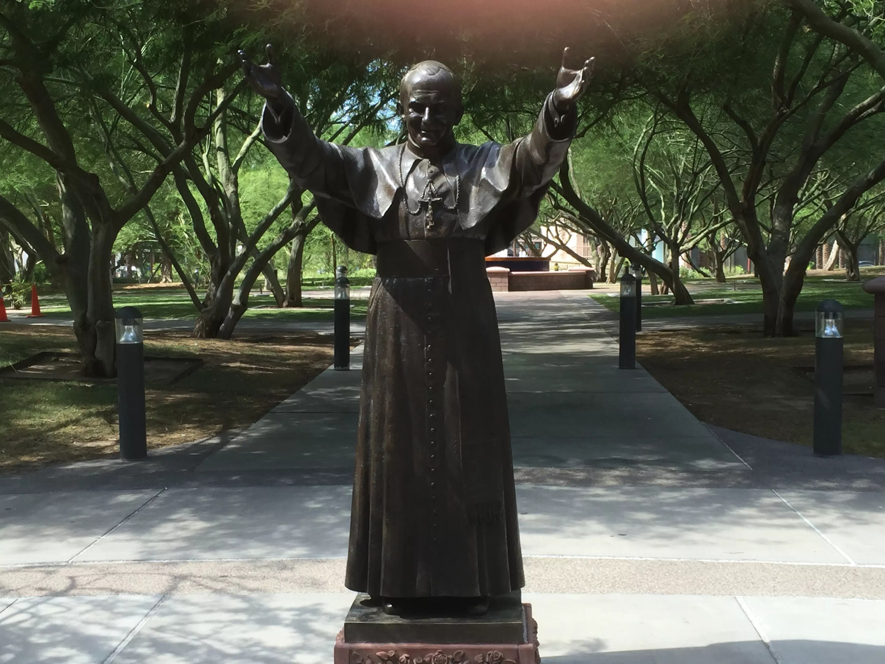 A statue of Pope John Paul II welcomes visitors to the Diocese of Phoenix, which is named in a new lawsuit by an alleged sexual assault victim