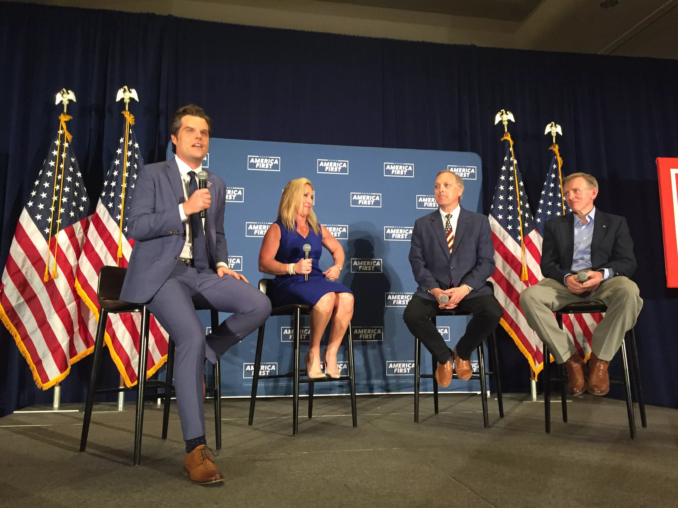 During a question-and-answer panel with Representatives Greene, Gaetz, Biggs, and Gosar at the rally after the speeches were over, Gaetz addressed the elephant in the room: That, under Trump, Republicans had lost both the White House and the Senate.