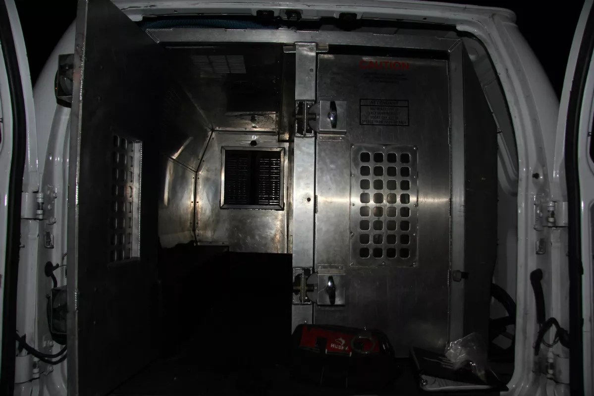 The inside of the van Violette was found hanging in after a 17-minute trip.