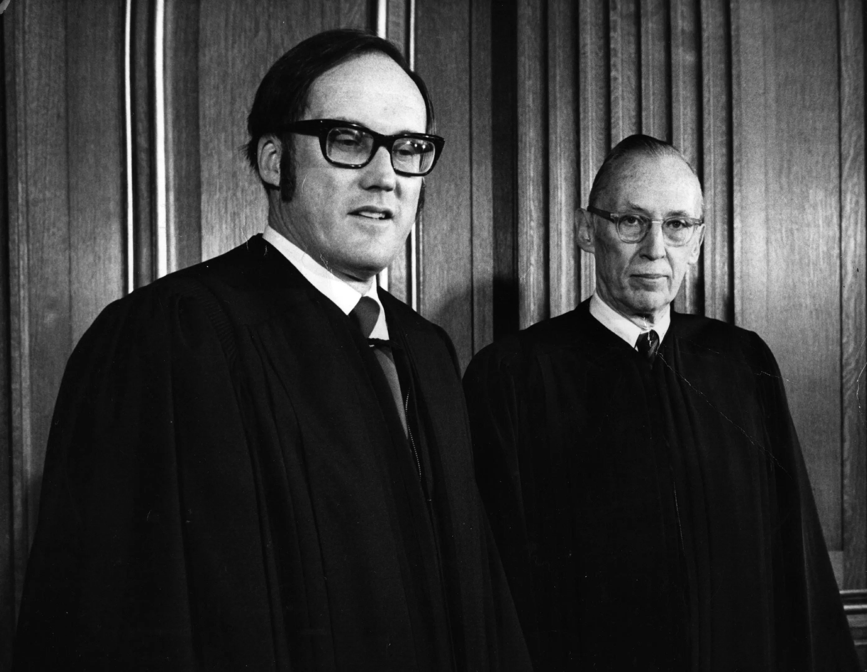Newly sworn-in justices William Rehnquist, an attorney from Arizona (left), and Lewis Powell in 1972.
