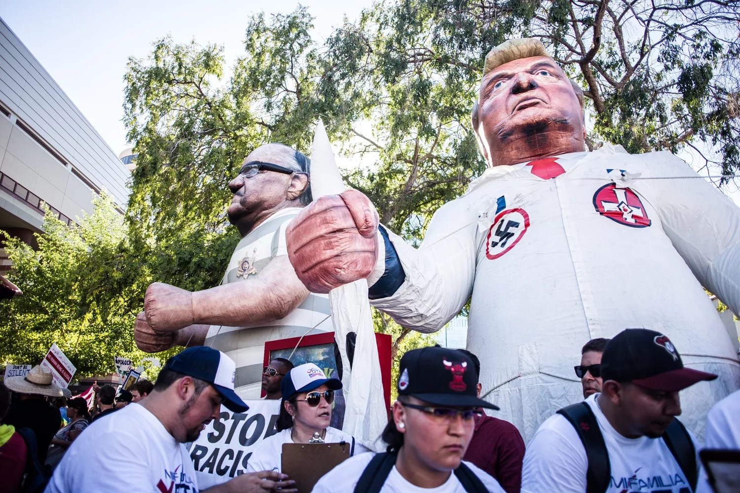 Demonstrators filled the streets at the Phoenix rally to protest Trump’s policies and his promised pardon for Joe Arpaio.
