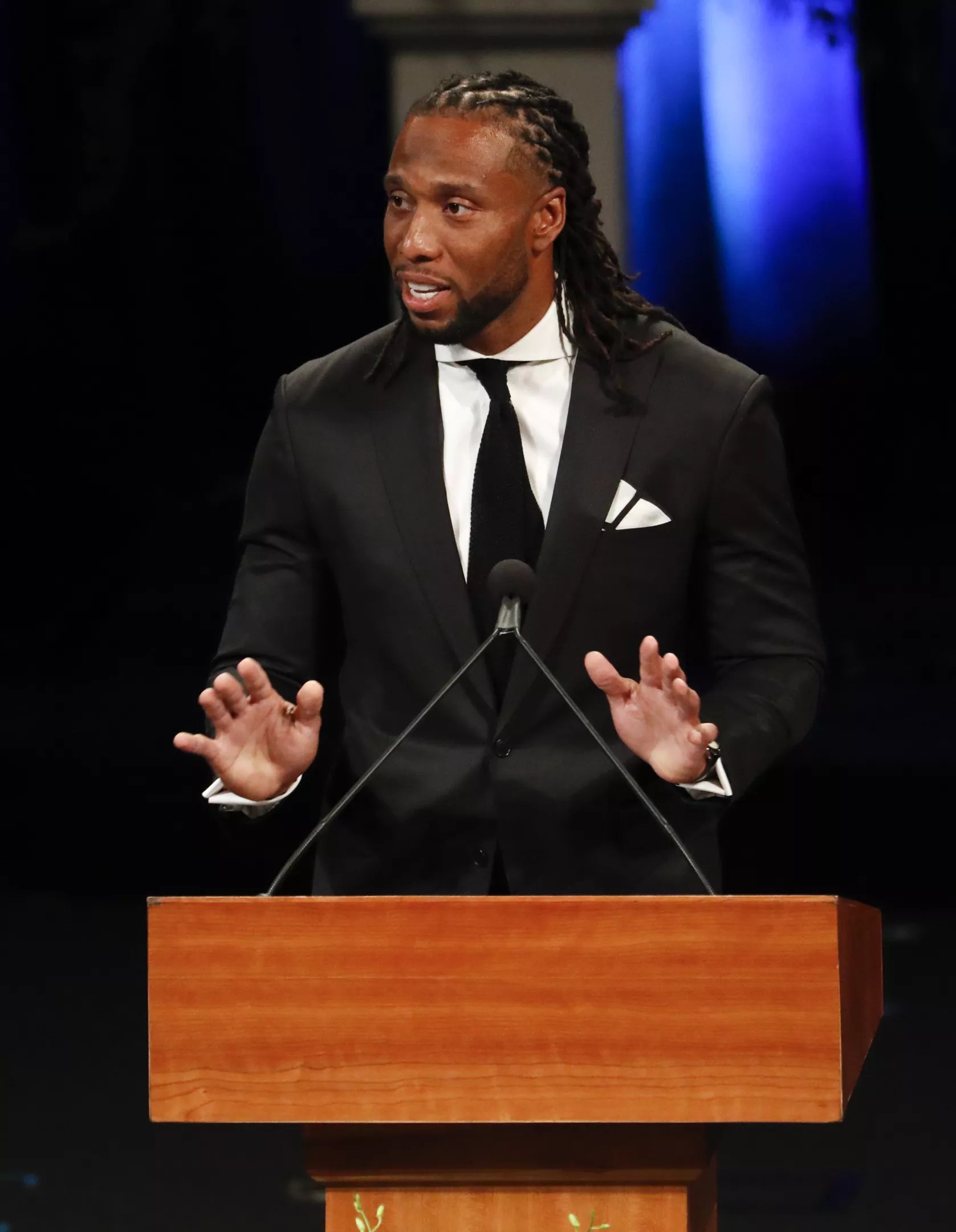 Speakers at the Thursday service included former Vice President Joe Biden, former Arizona attorney general Grant Woods, Arizona Cardinals star receiver Larry Fitzgerald, and President of the Raza Development Fund Tommy Espinoza.